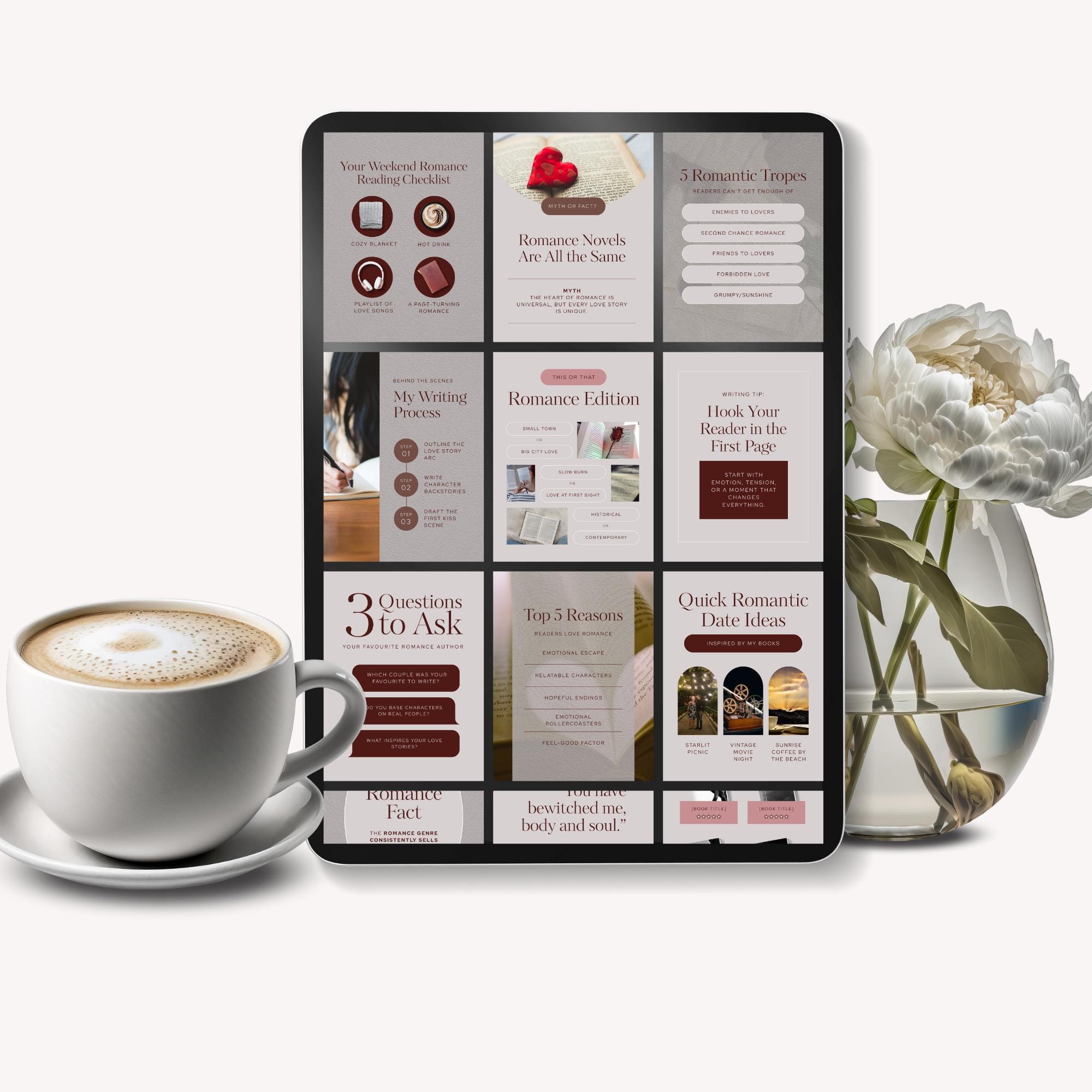 Whether you’re a romance book author looking to connect with readers, a romance writer planning a new book release, or an indie author wanting polished writer Canva designs, this social media kit makes it easy to stay consistent and professional on Instagram.