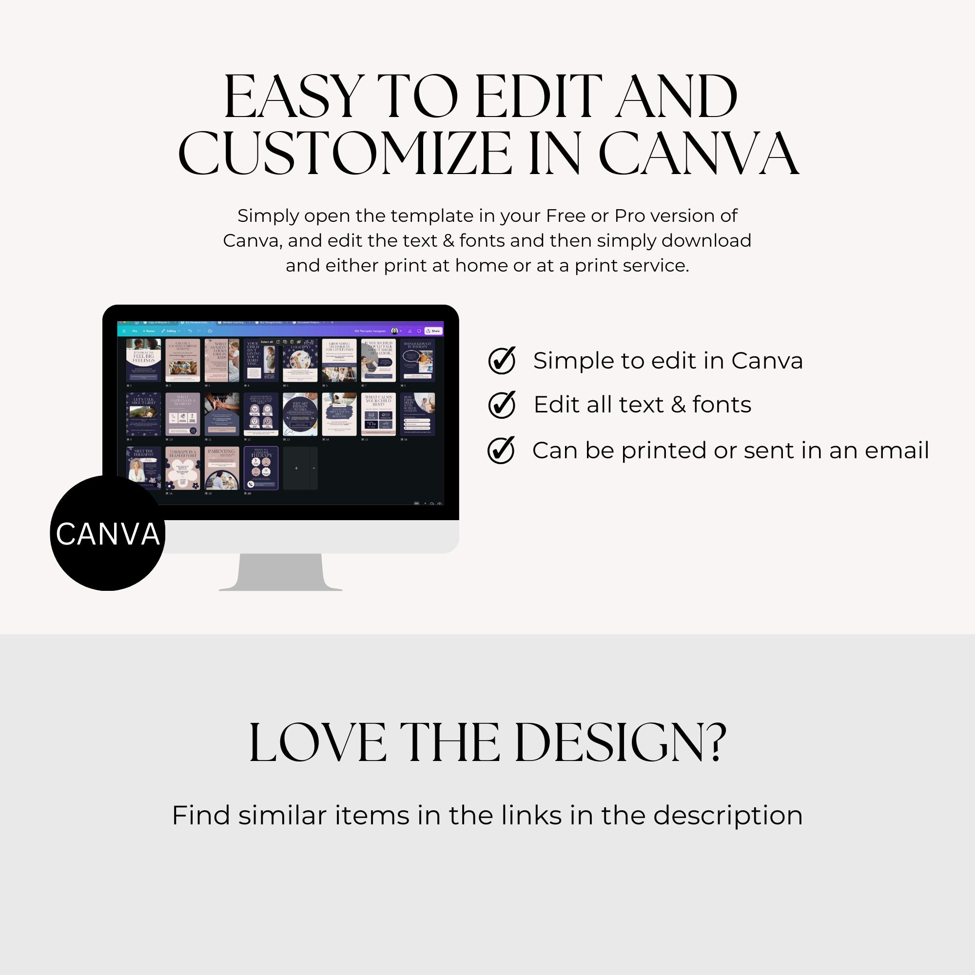 ♥♥ PLEASE NOTE - this is a digital download / template. No physical product will be shipped. Once you have placed your order you will receive a link to edit your template online using the free software Canva. No waiting for designers - get access immediately.
