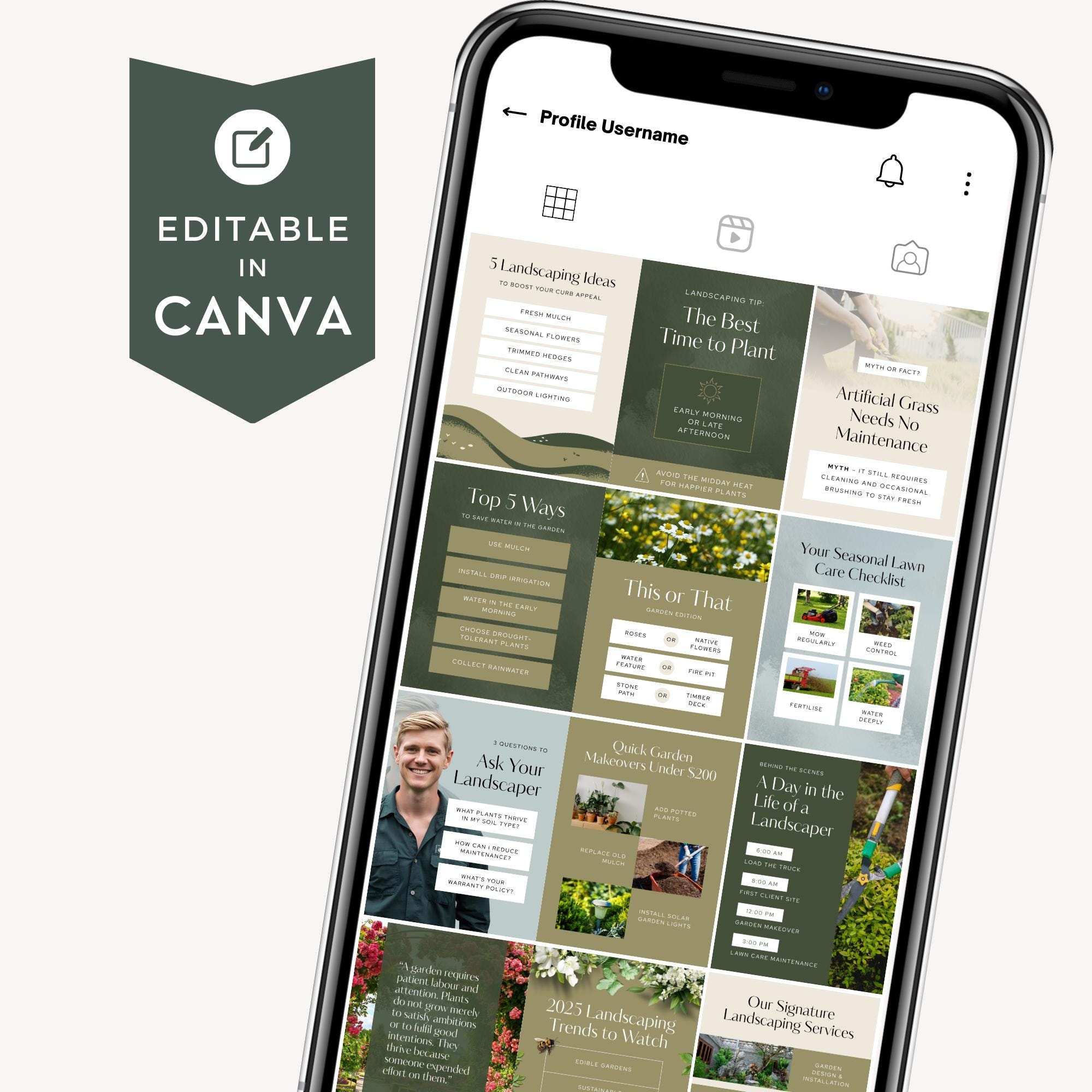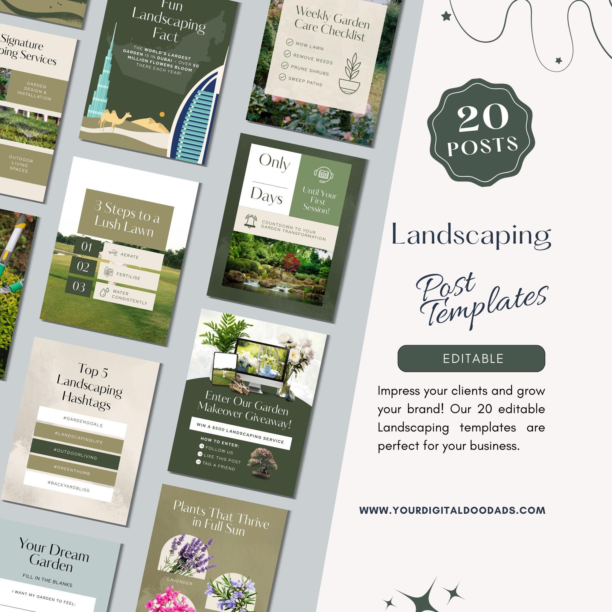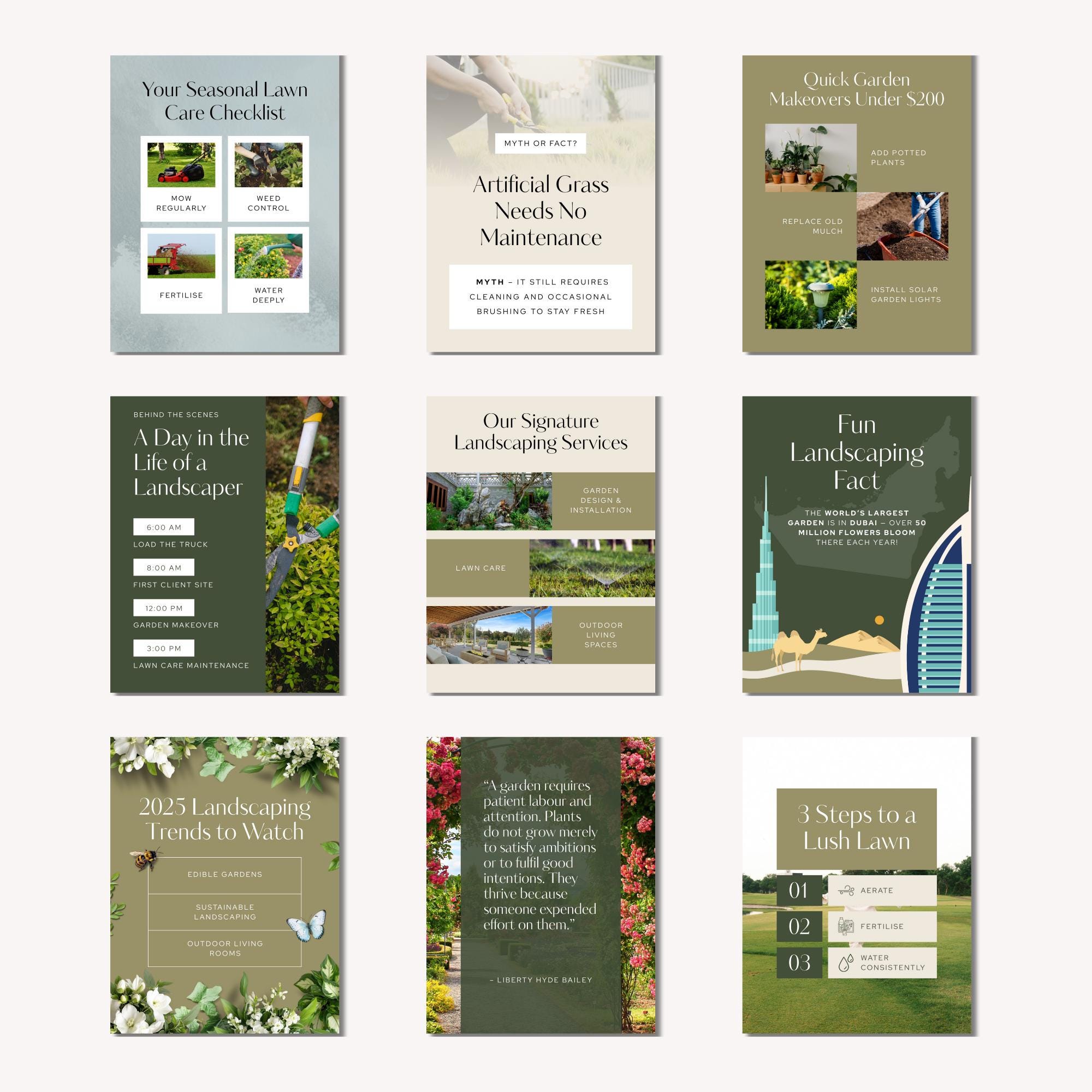 - 20 Instagram post templates (1080x1440 px), tailor-made for contractors, lawn mowing, landscape marketing, garden care, and yard services