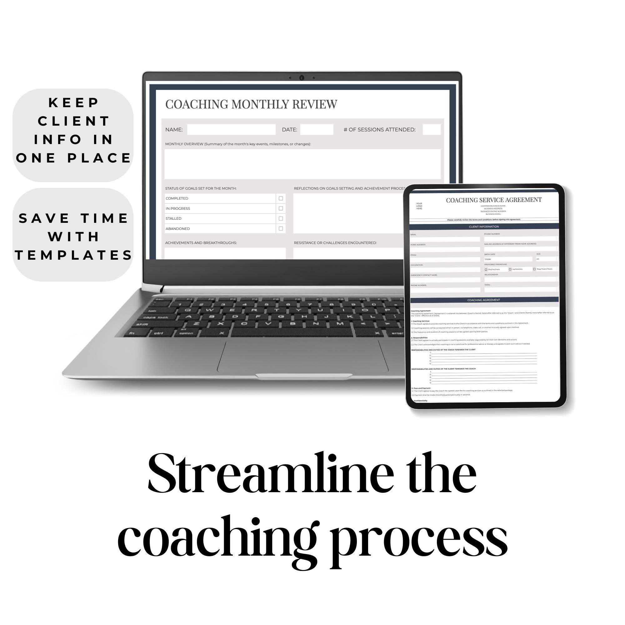 Run your coaching business using this Business Coach Toolkit - a complete set of coaching forms and editable templates designed in Google Sheets. Whether you’re a business coach, life coach, consultant, or executive coach, this toolkit provides the structure and professionalism you need to support your clients.