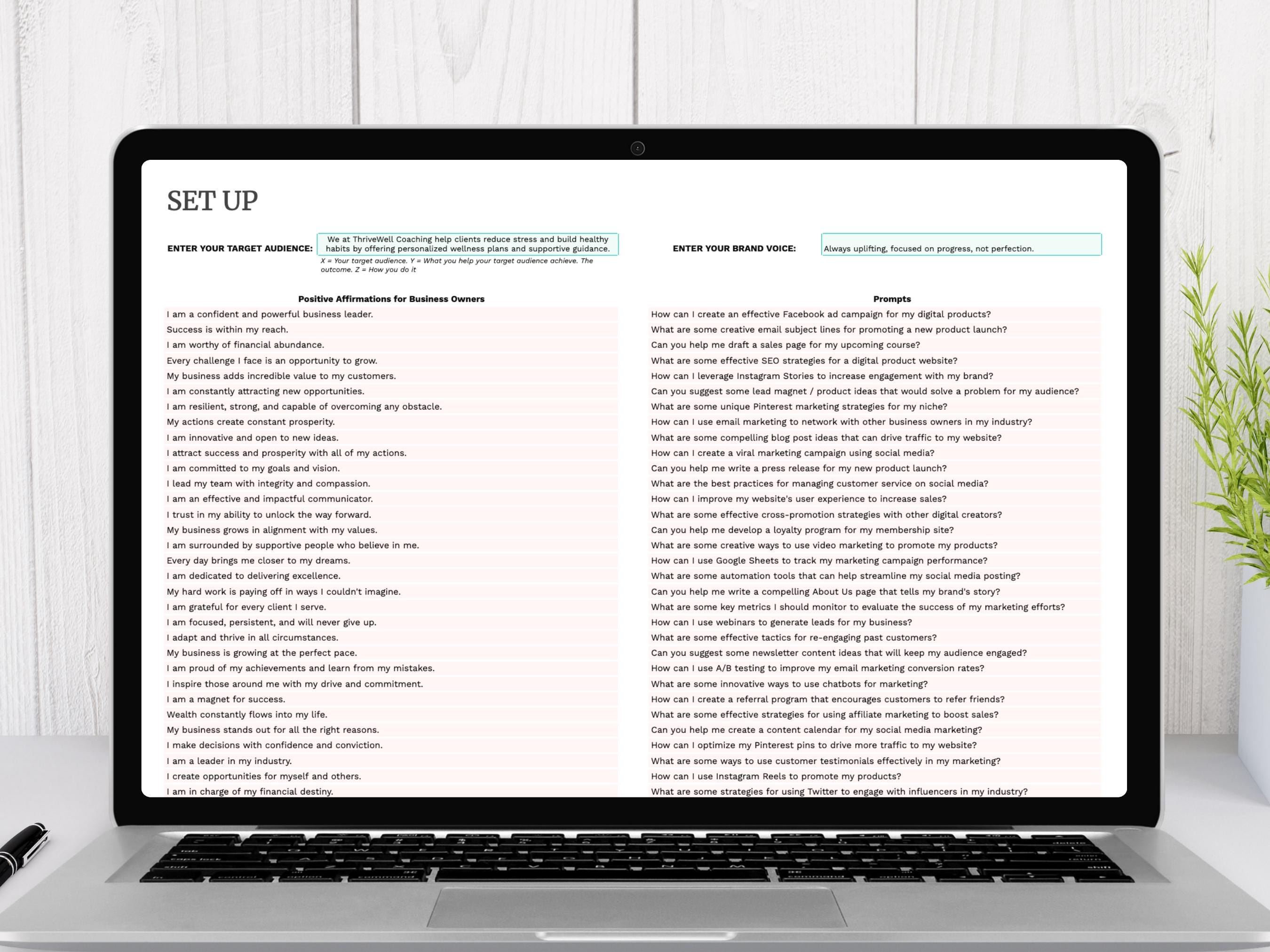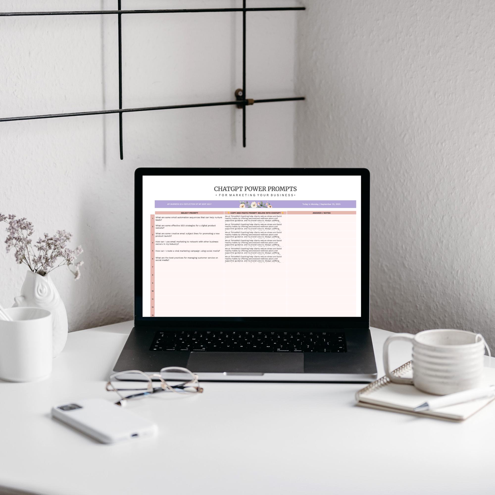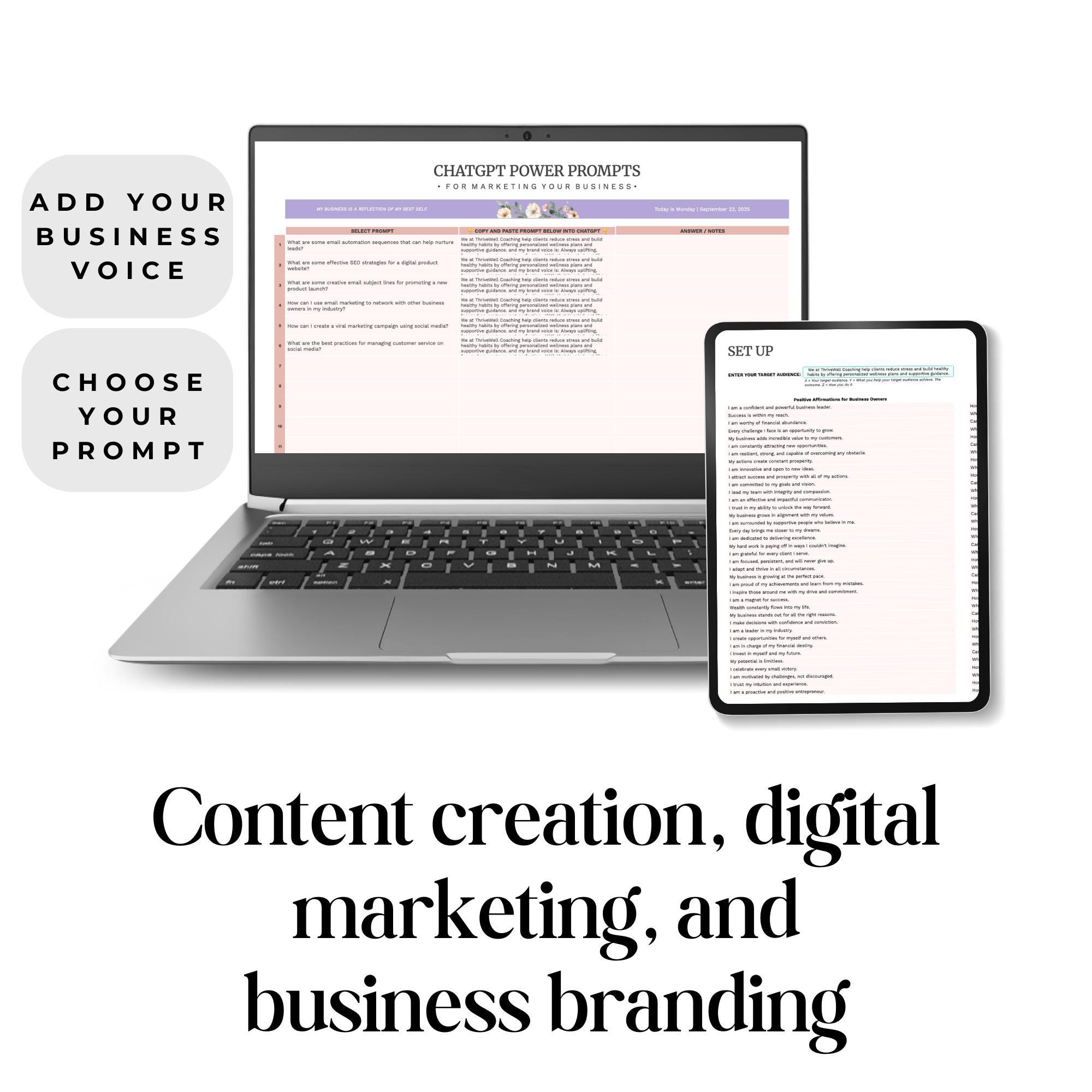 Designed for small business owners, coaches, and entrepreneurs, this easy-to-use template gives you 100+ ChatGPT prompts for content creation, digital marketing, and business branding - all in one organized content planner.