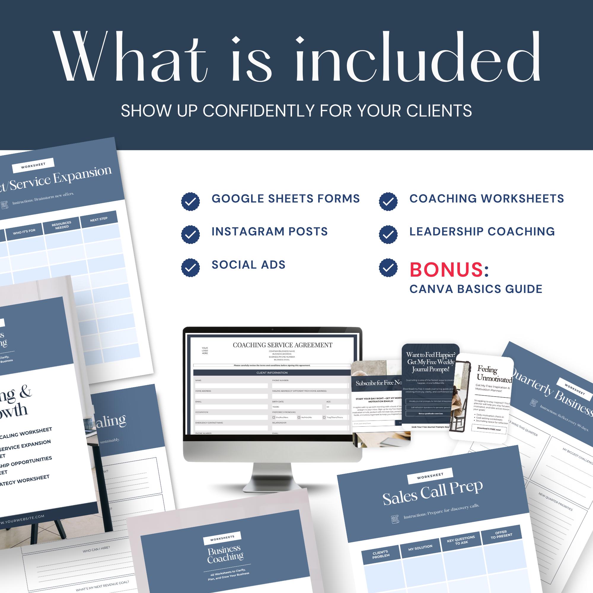 Ready to streamline your coaching business and wow your clients? This all-in-one Business Coaching Bundle gives you everything you need to save time, stay organized, and show up confidently online.
