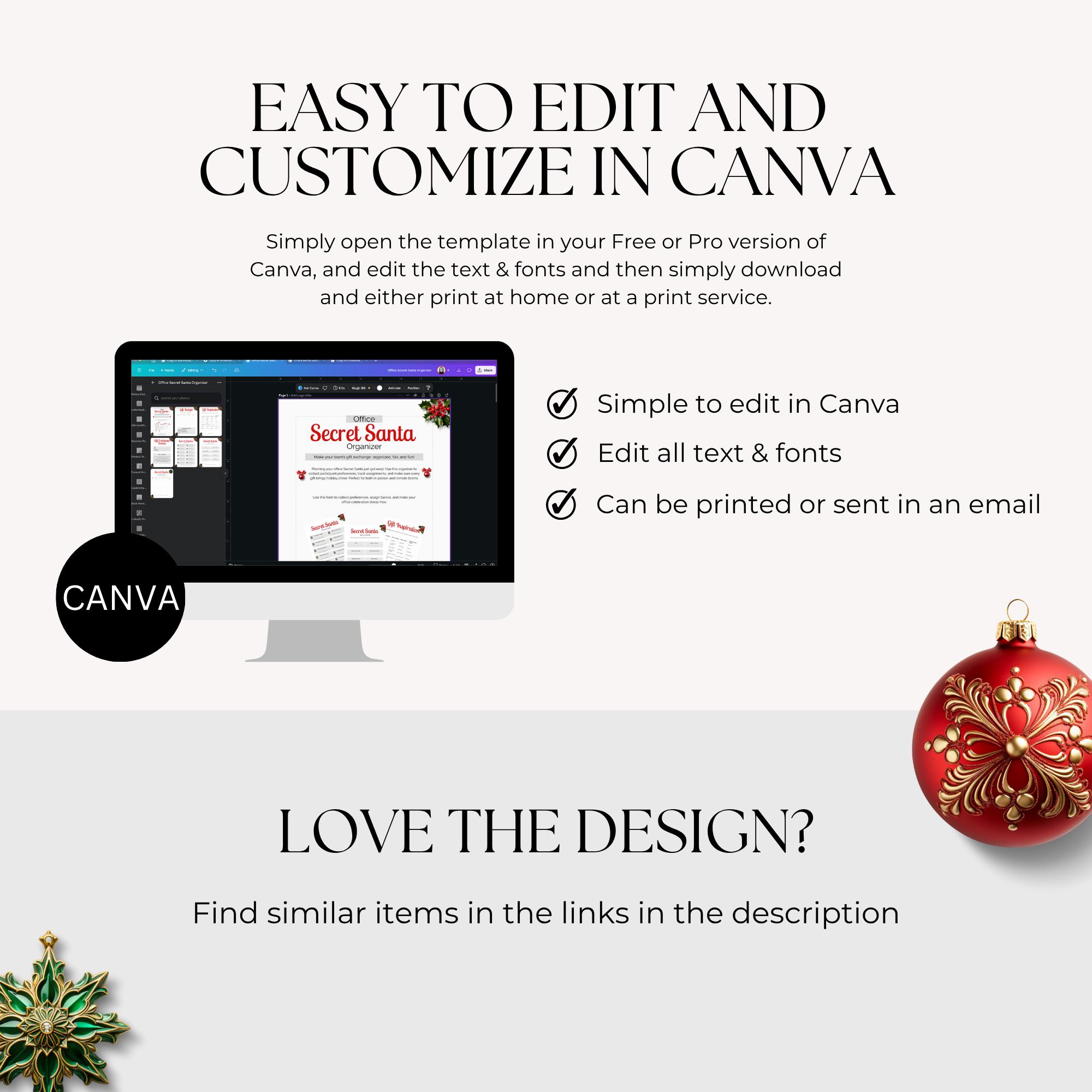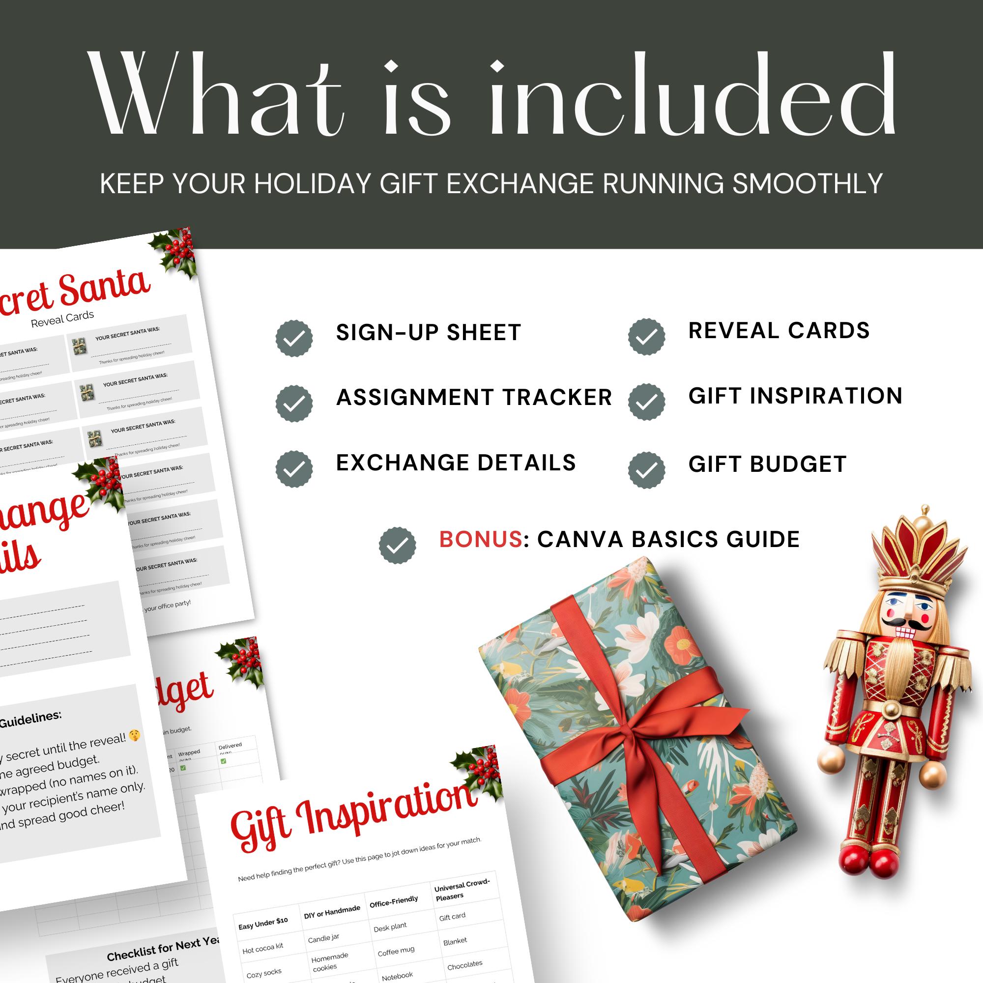 Take the stress out of your office Secret Santa with this easy-to-use 7-page template set. Designed for Canva and ready-to-print PDF, this organizer keeps your holiday gift exchange running smoothly from sign-up to the big reveal. Perfect for HR teams, managers, or anyone planning a Christmas work event or Xmas office party.