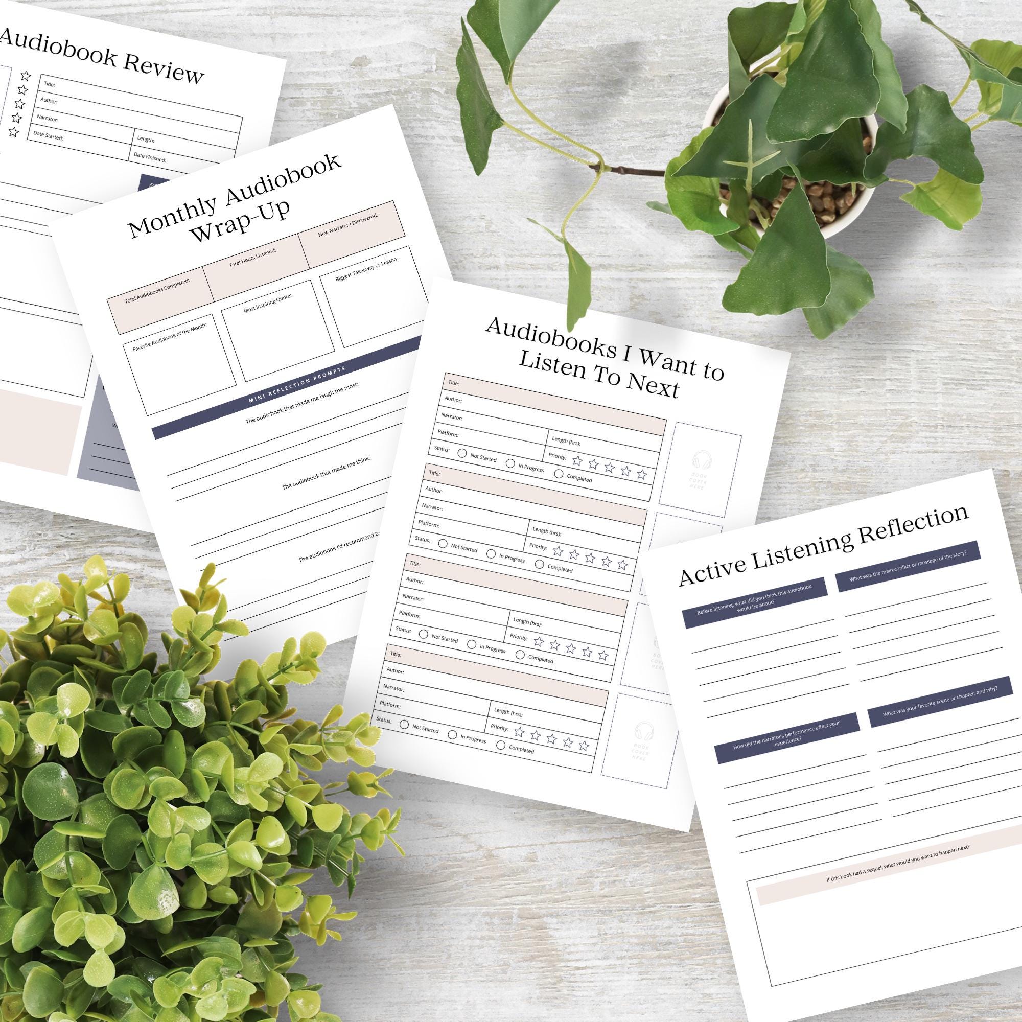 Includes reading log sheets, audiobook journal pages, monthly wrap-ups, and reflection prompts—perfect for turning ideas into action. Use it as a listening journal, book review tracker, or simple printable log to organize the books you have read and those you plan to explore next.