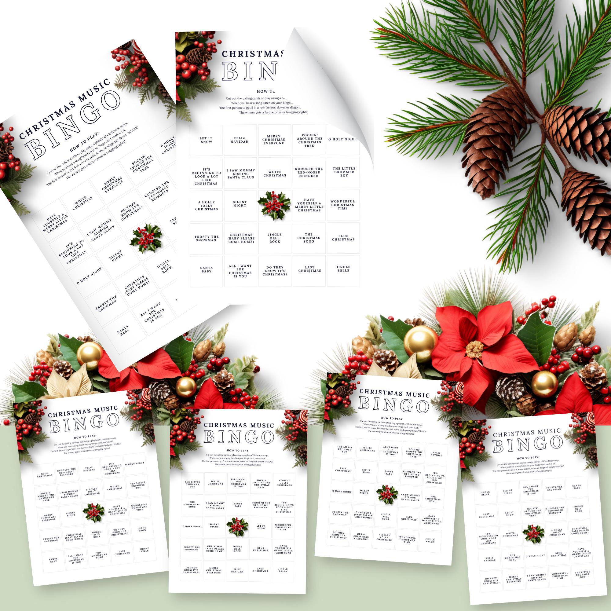 - 6 unique Xmas Music Bingo cards (PDF, ready to print)