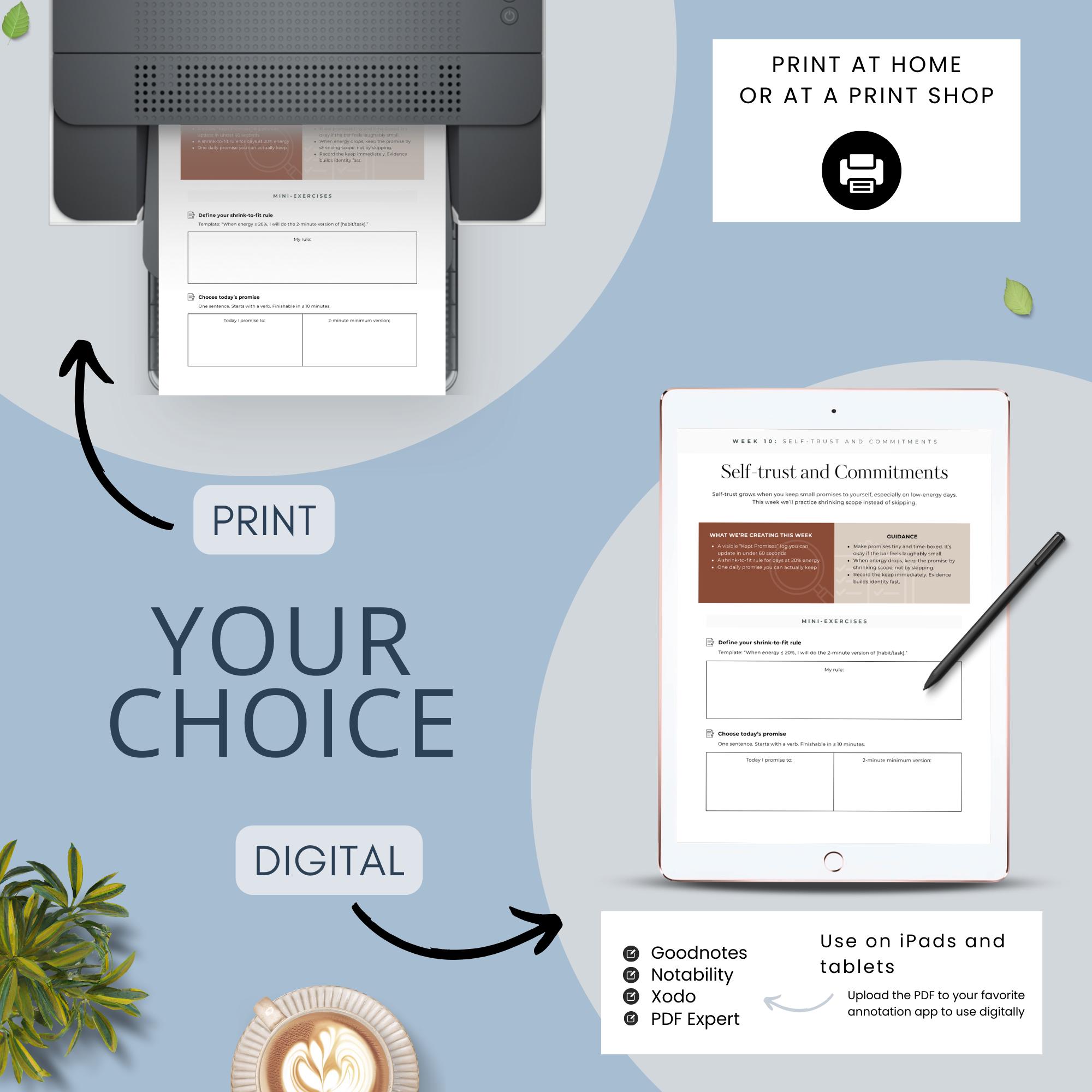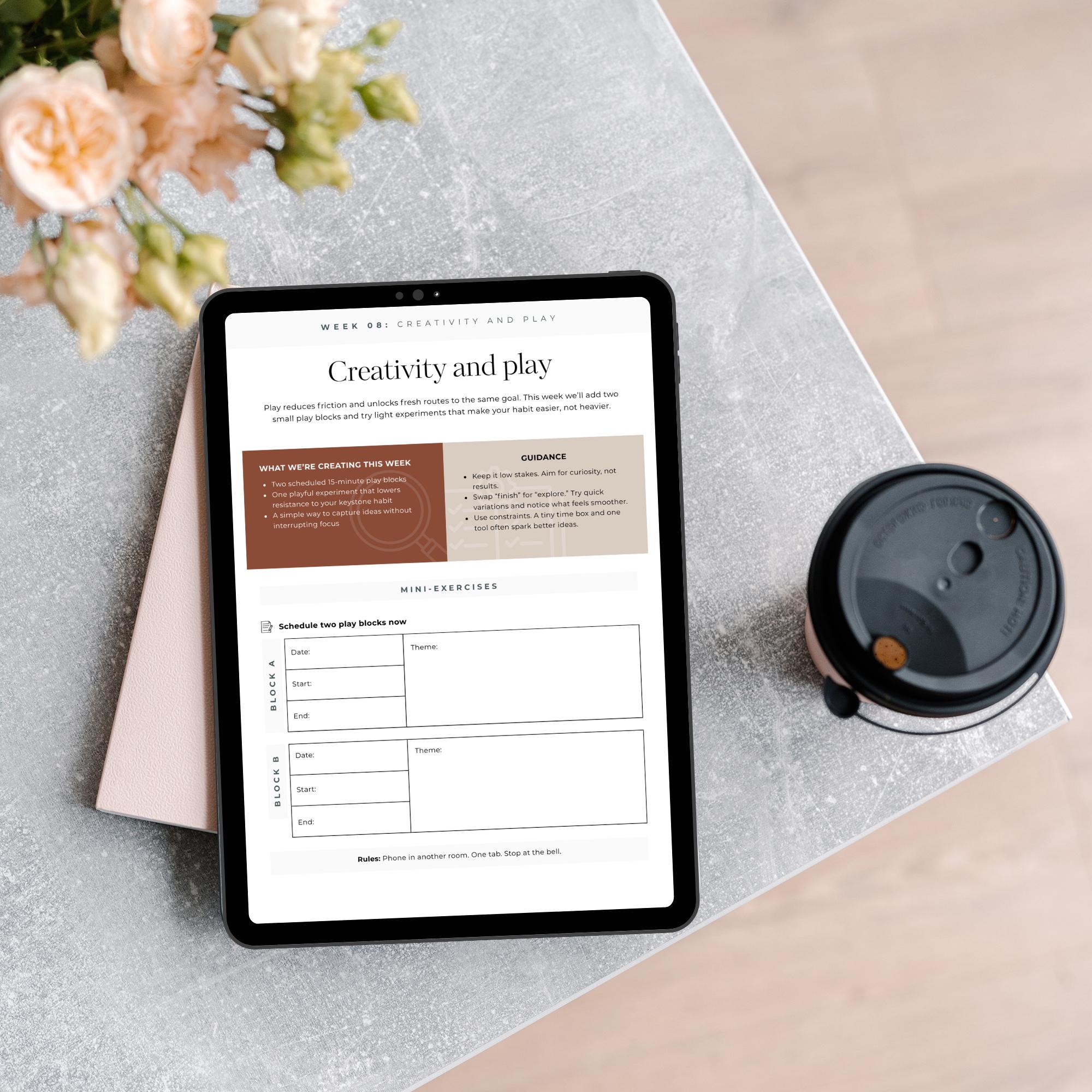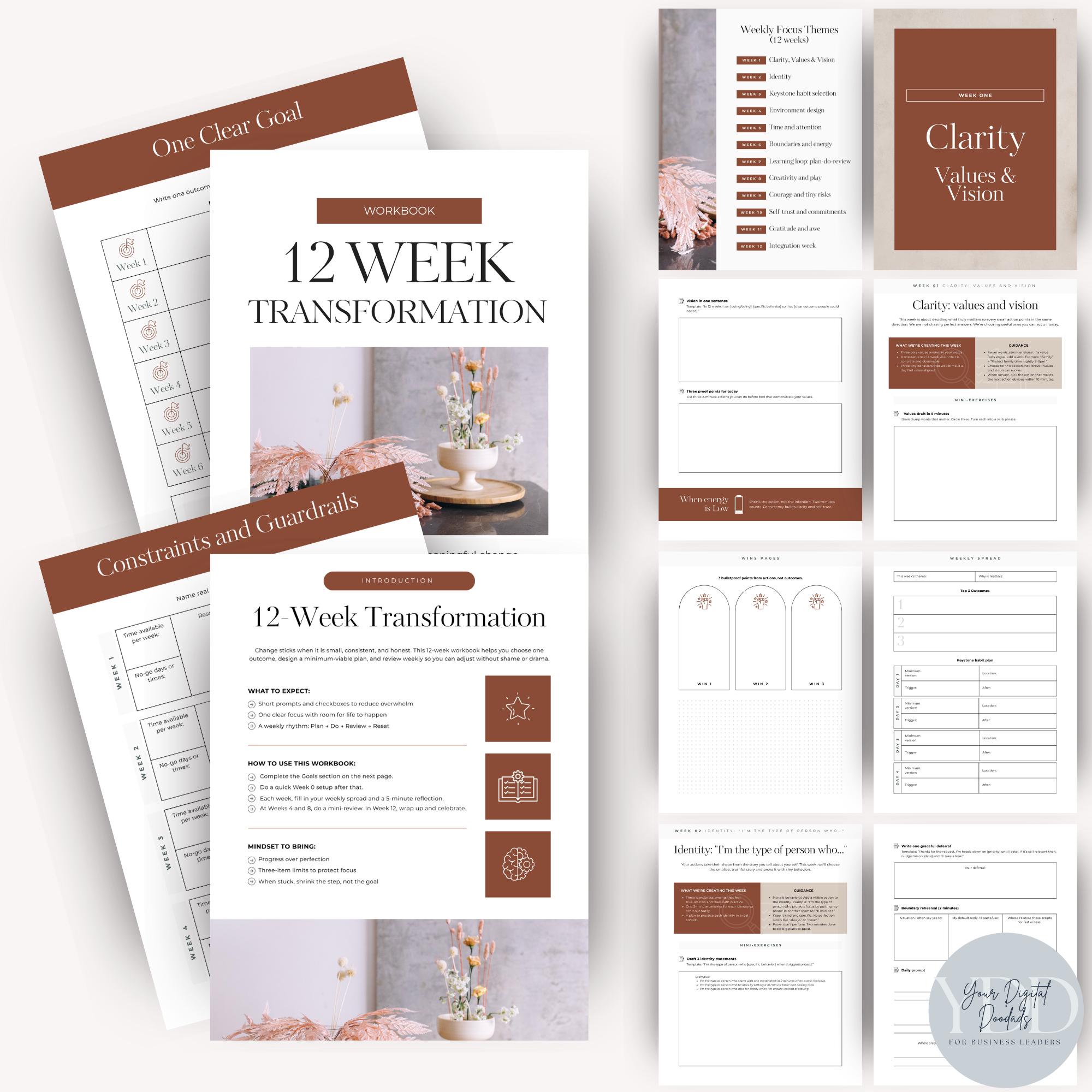 Includes weekly planning pages, habit tracker, reflection prompts, micro-wins log, and a repeatable 12-week system you can use again and again.