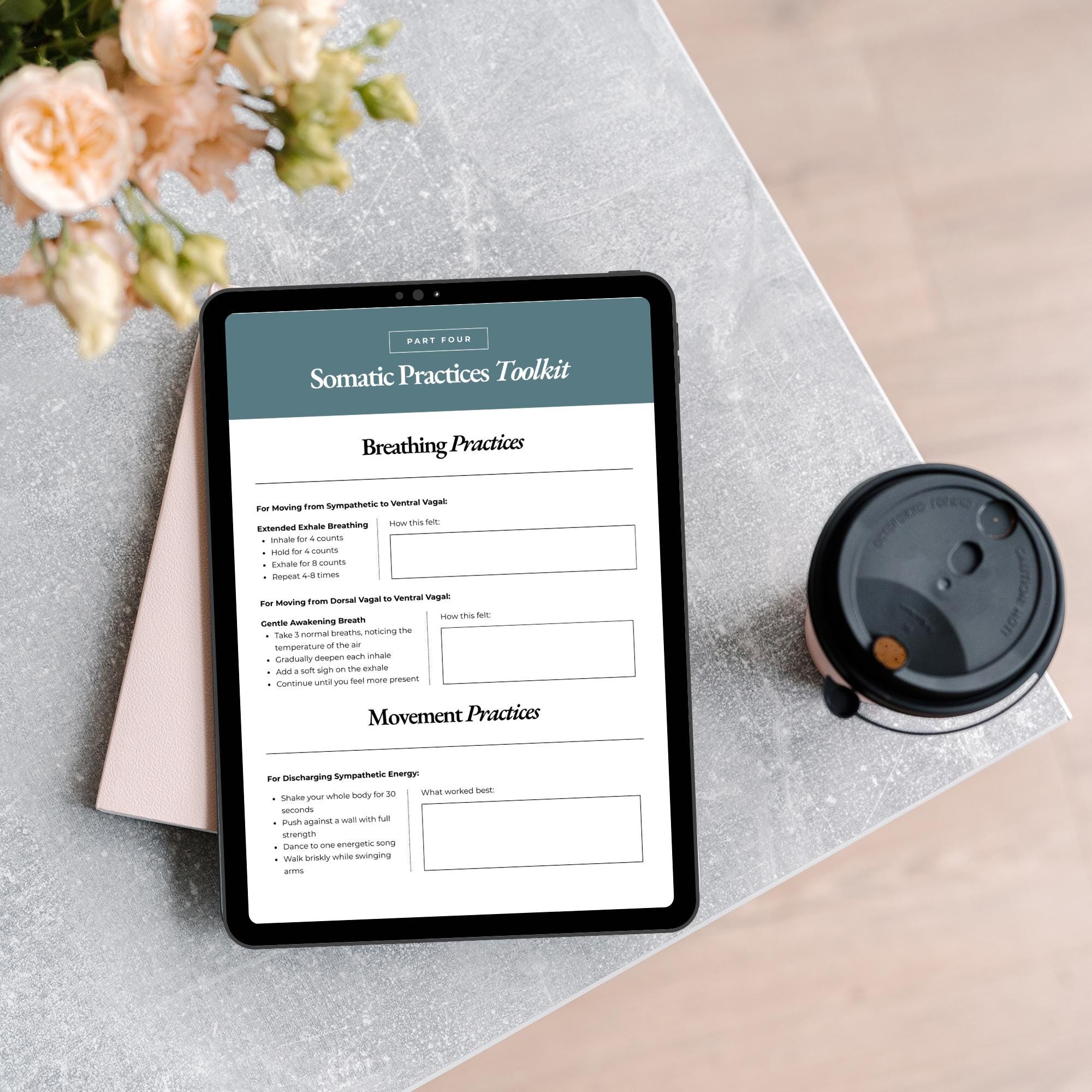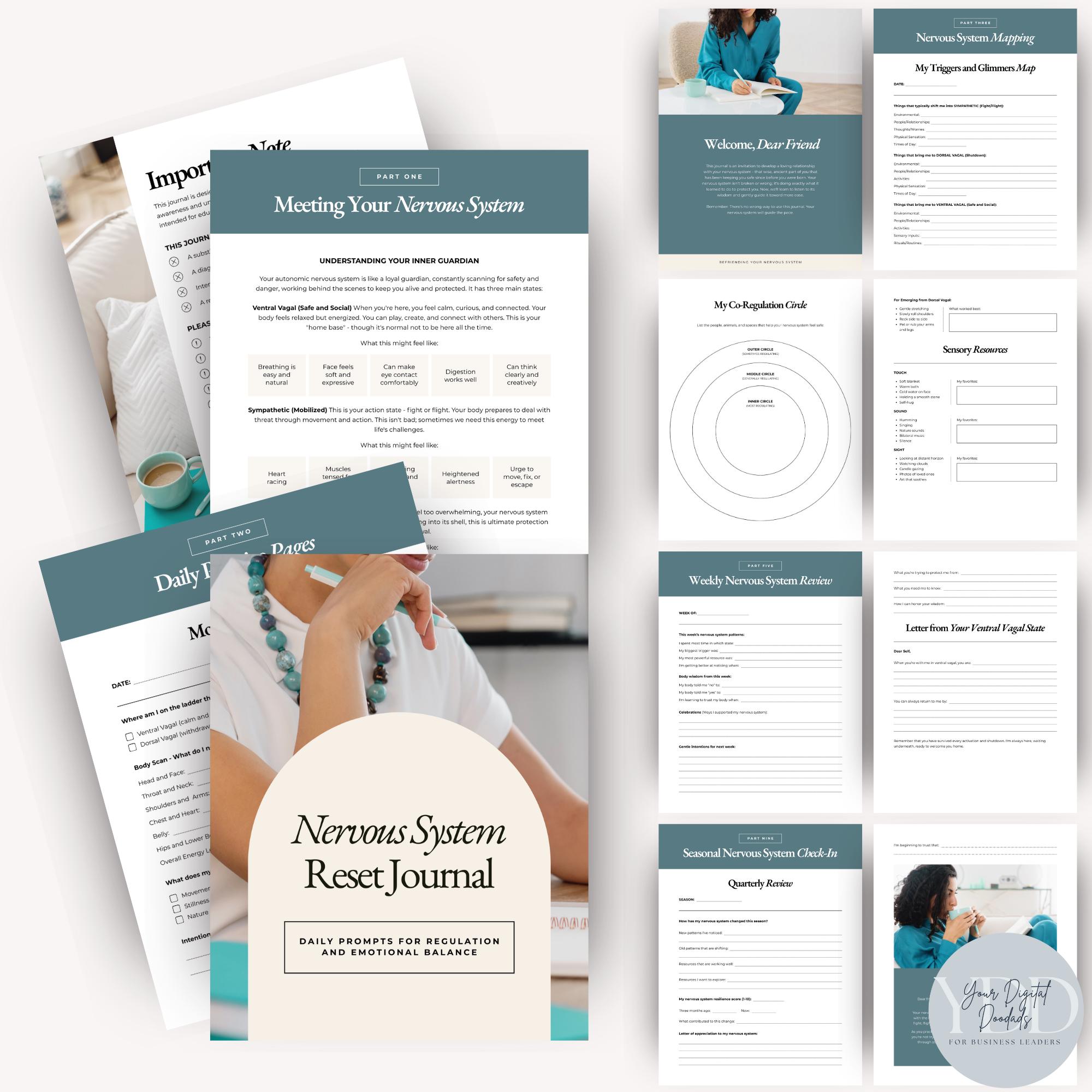 Includes daily check-ins, somatic prompts, trauma support pages, therapy worksheets, and guided reflections to help you regulate, reset, and reconnect. Perfect for personal use or as a coaching guide.
