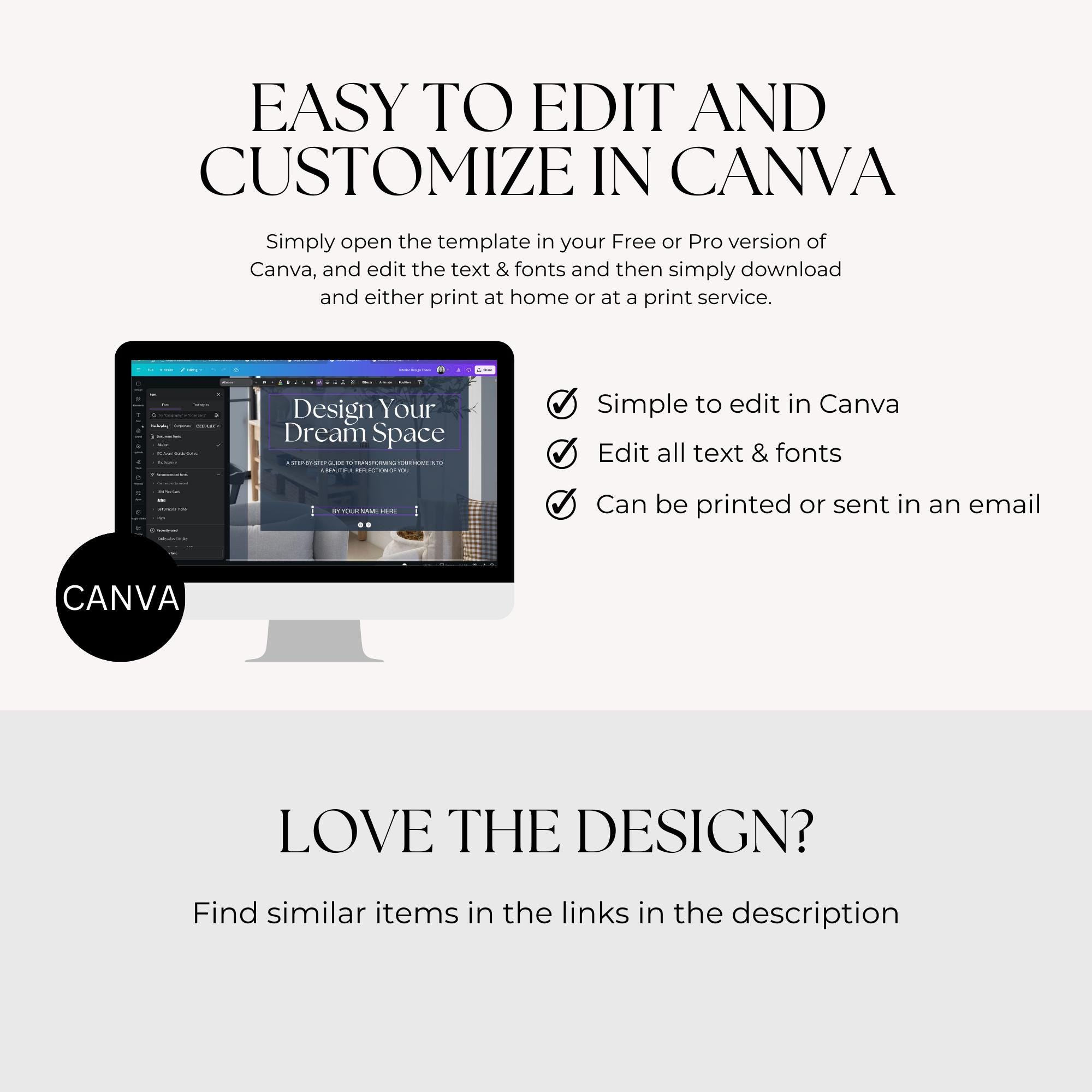 This customizable ebook layout is fully editable in Canva, making it easy to match your brand colors, fonts, and design style. Whether you’re creating a signature client guide, staging booklet, or digital home decor guide, this template gives you an elevated foundation without spending hours designing from scratch.