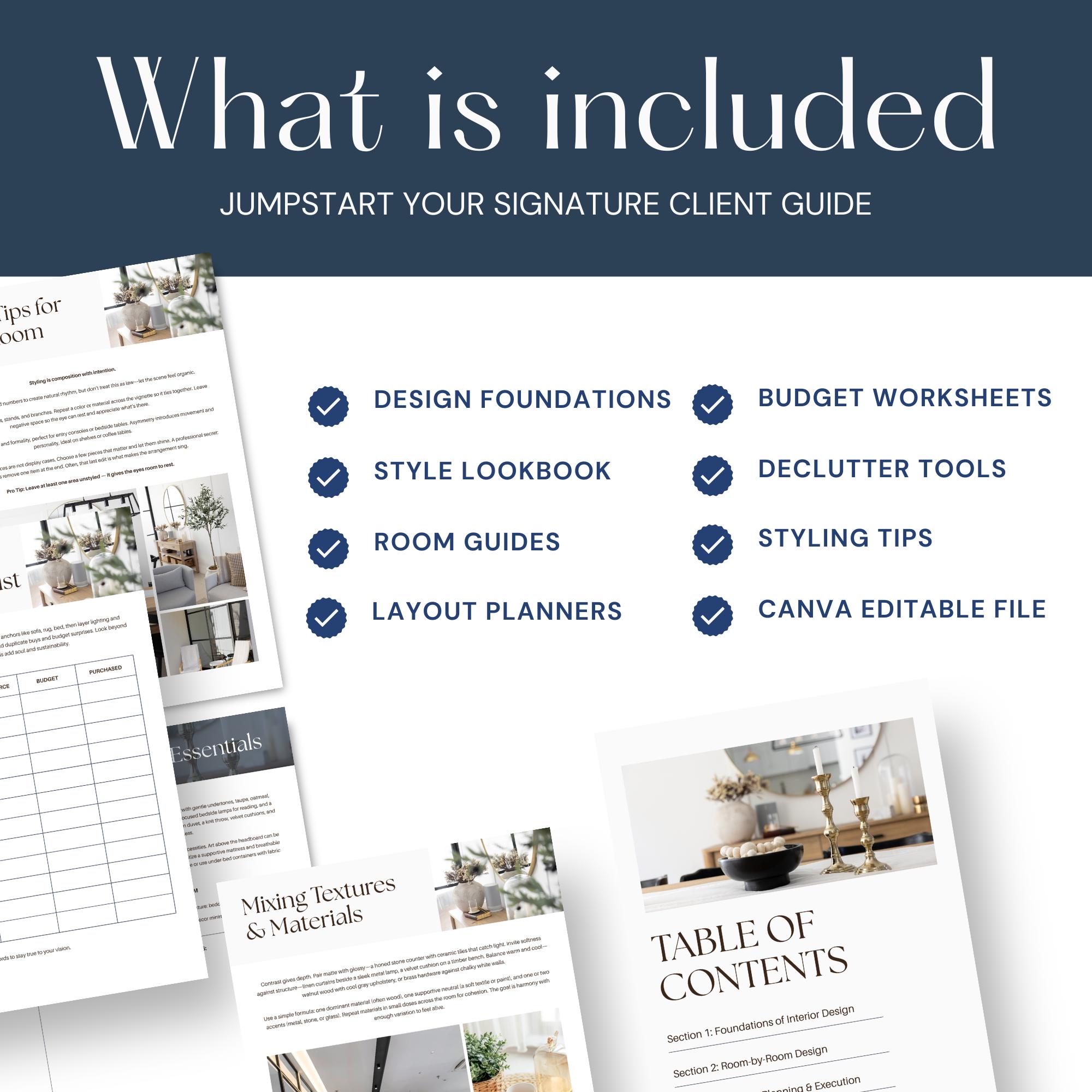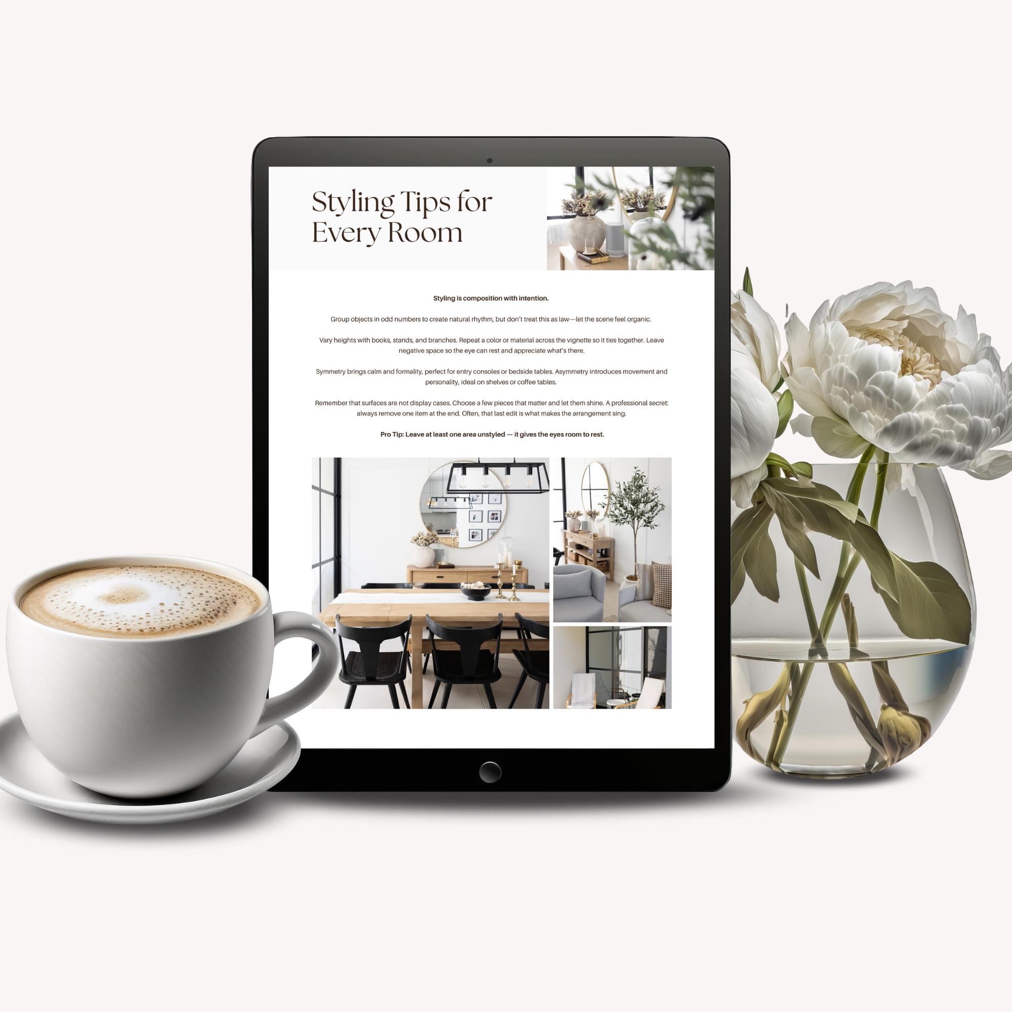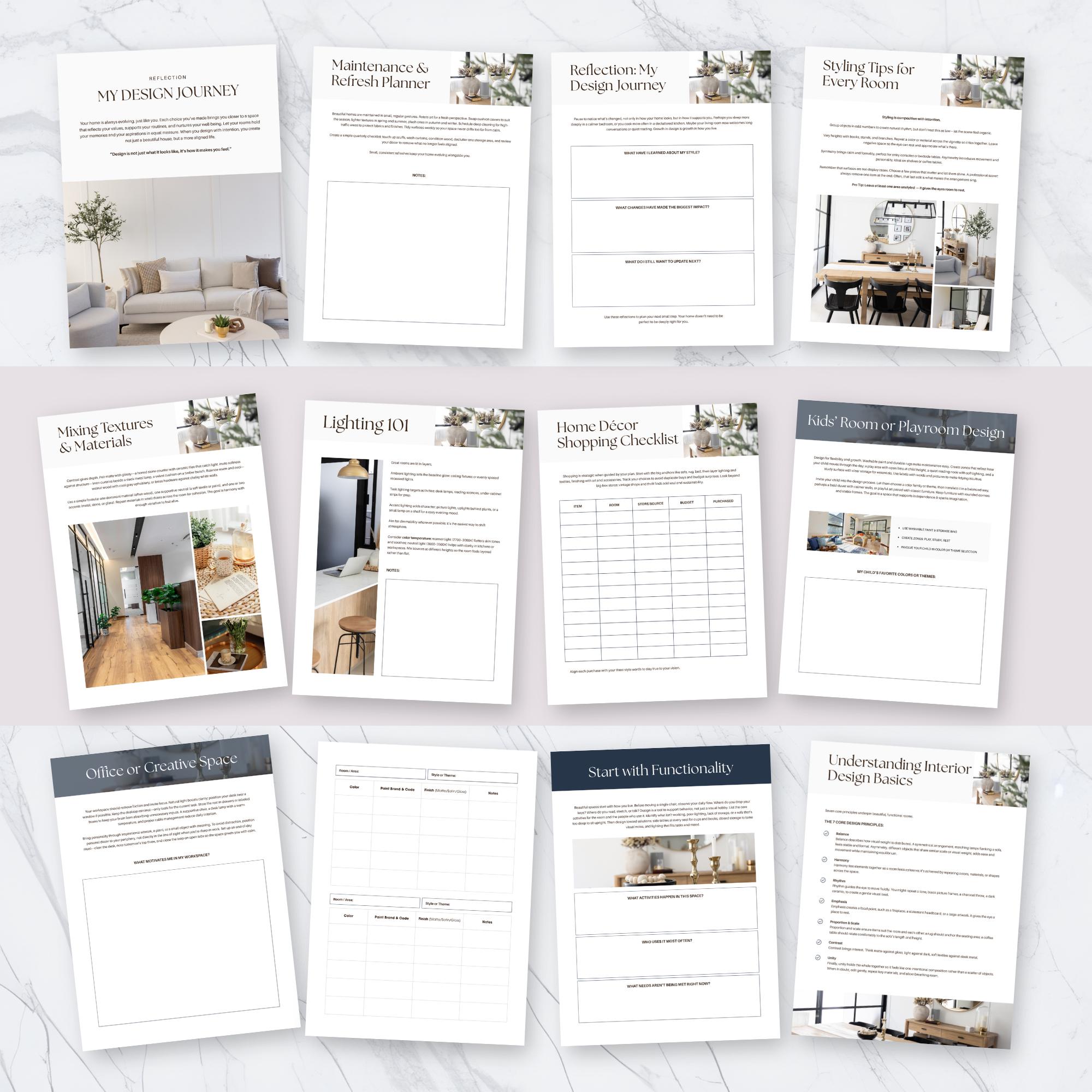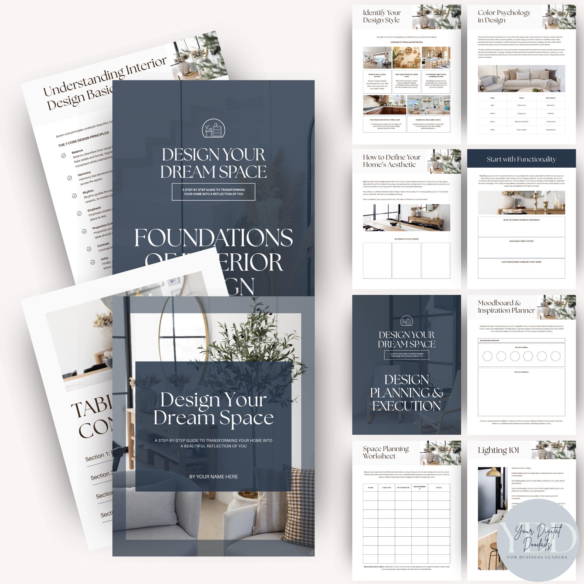 Transform your client experience with this Interior Design Canva Ebook - a beautifully designed home styling client guide PDF that doubles as a style lookbook, designer resource, and aesthetic decor e-book. Perfect for interior decorators, home stagers, and new designers who want a polished, professional way to present their process, educate clients, or offer a value-packed digital freebie.