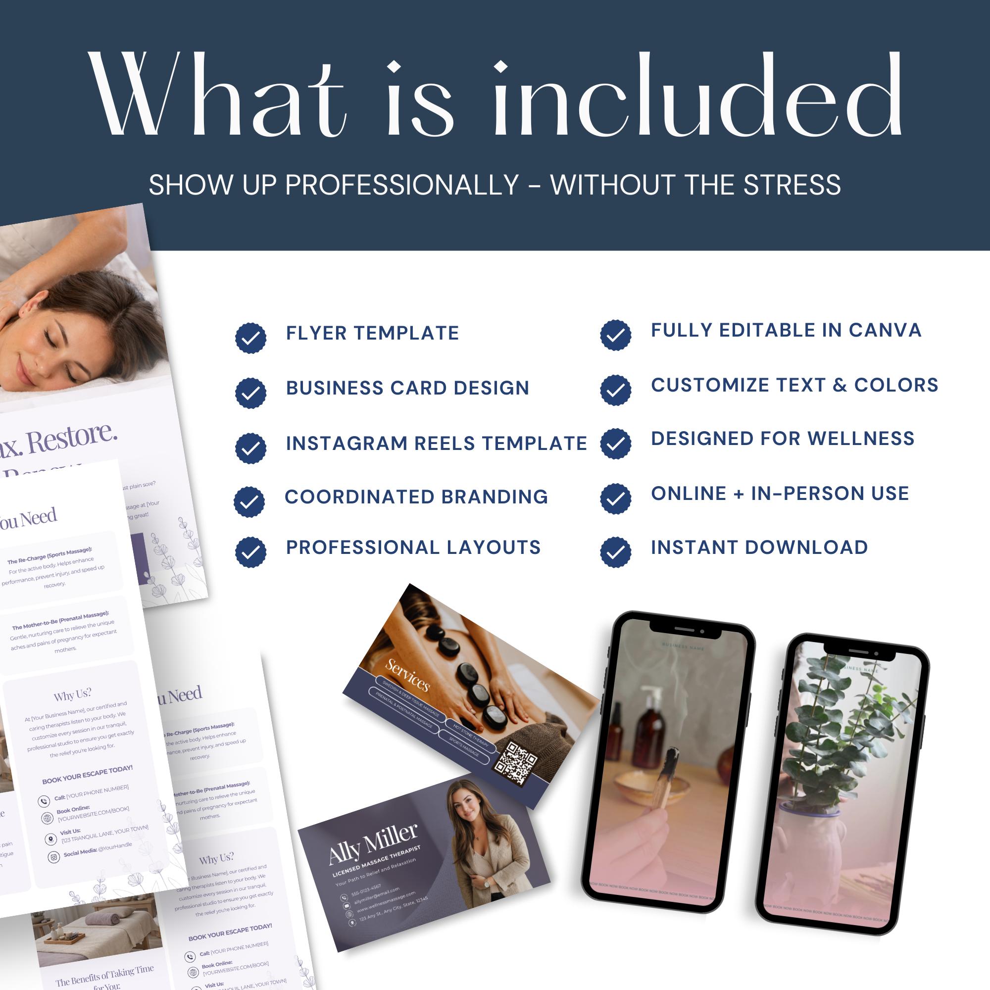 This Massage Therapy Marketing Kit includes everything you need to present your business professionally — both online and in person.