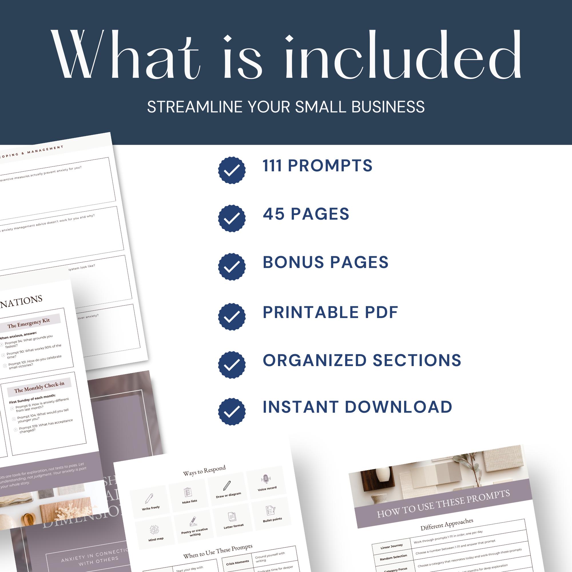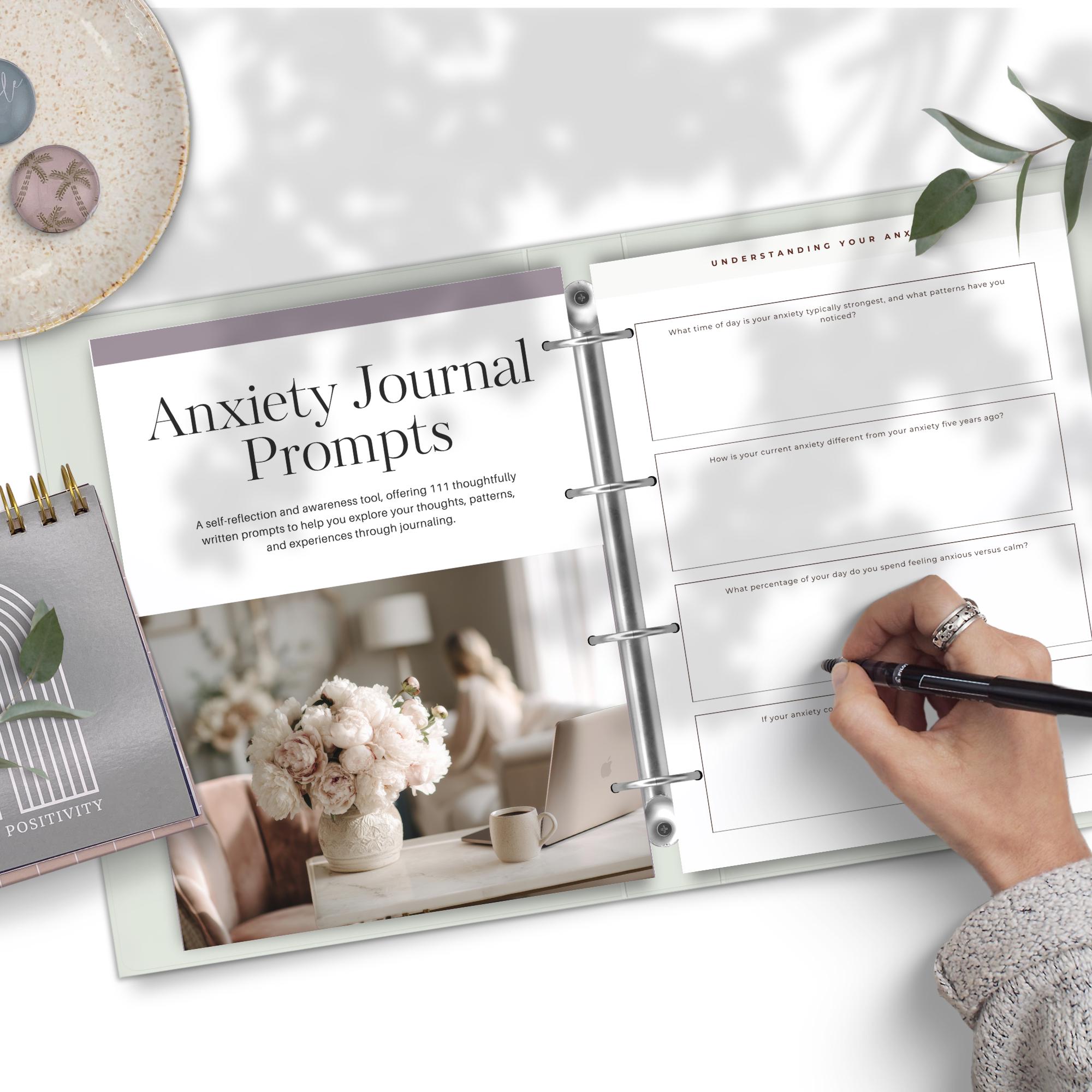 This printable anxiety journal is designed as a self-reflection and awareness tool, offering 111 thoughtfully written prompts to help you explore your thoughts, patterns, and experiences through journaling.