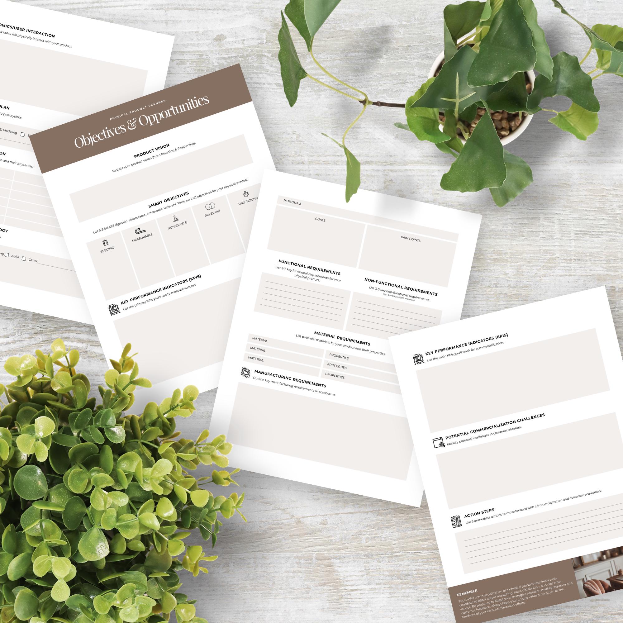 This Physical Product Planner (Printable PDF) gives makers, inventors, and small business owners a structured place to plan every stage of developing a physical item — from first concept through manufacturing, testing, and launch.