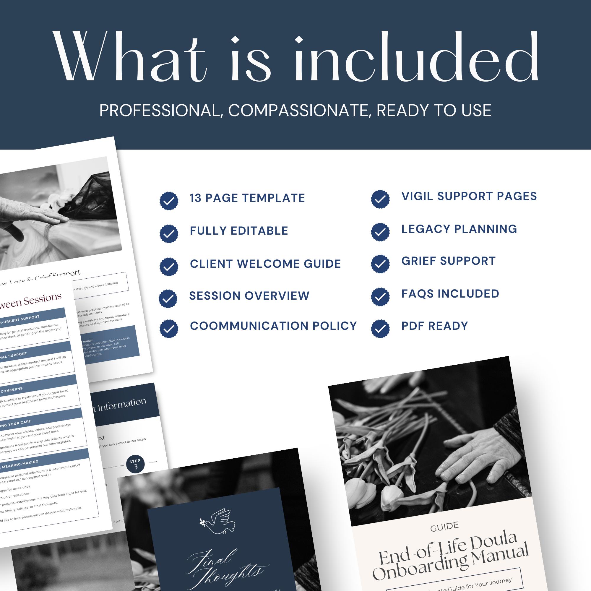 This beautifully designed End-of-Life Doula Welcome & Onboarding Guide gives you a compassionate, professional way to introduce your services, explain your role, and set expectations — without having to write everything from scratch.