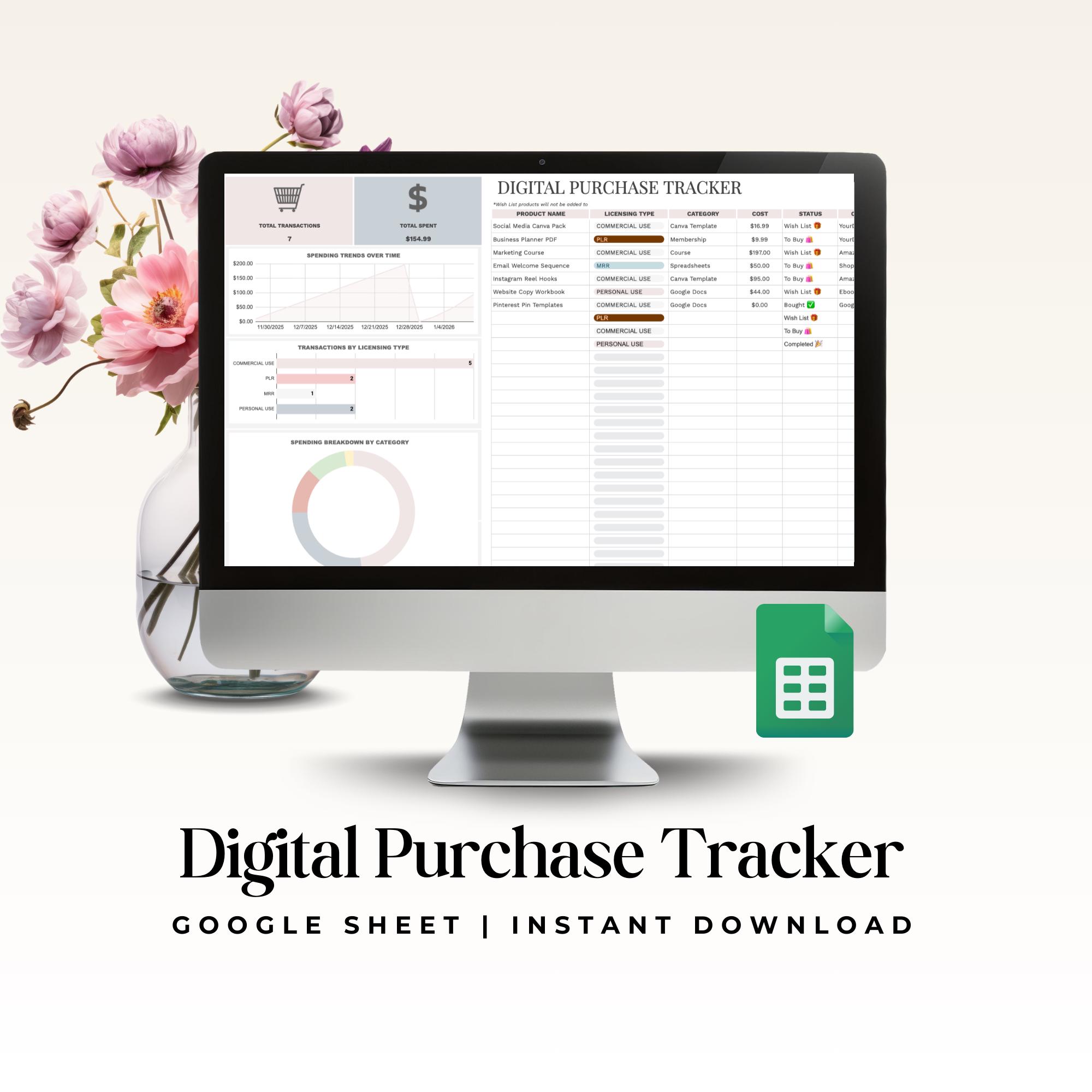 - Google Sheets digital purchase tracking template