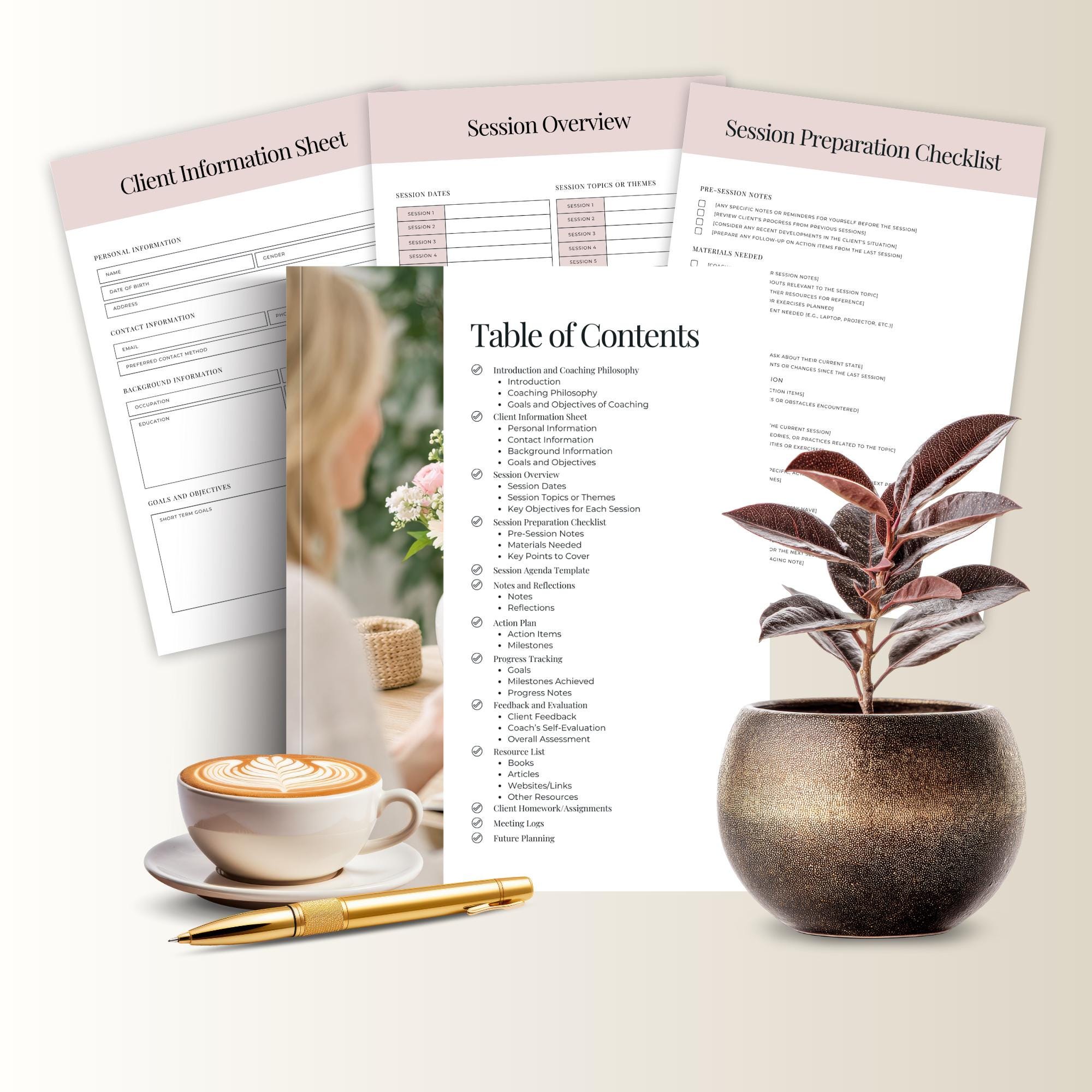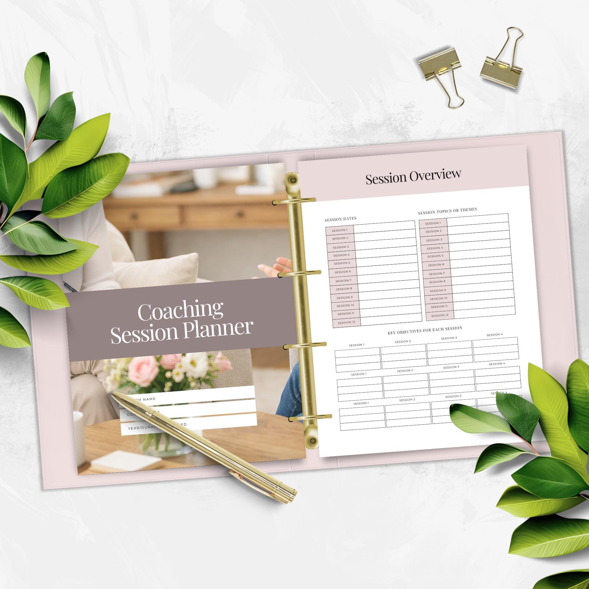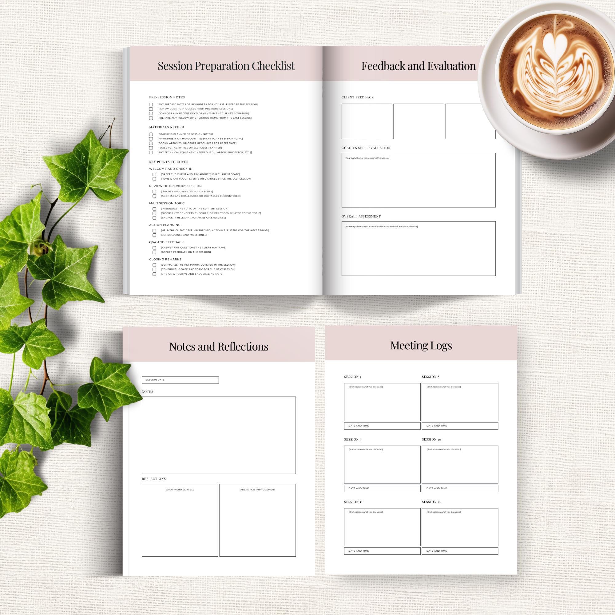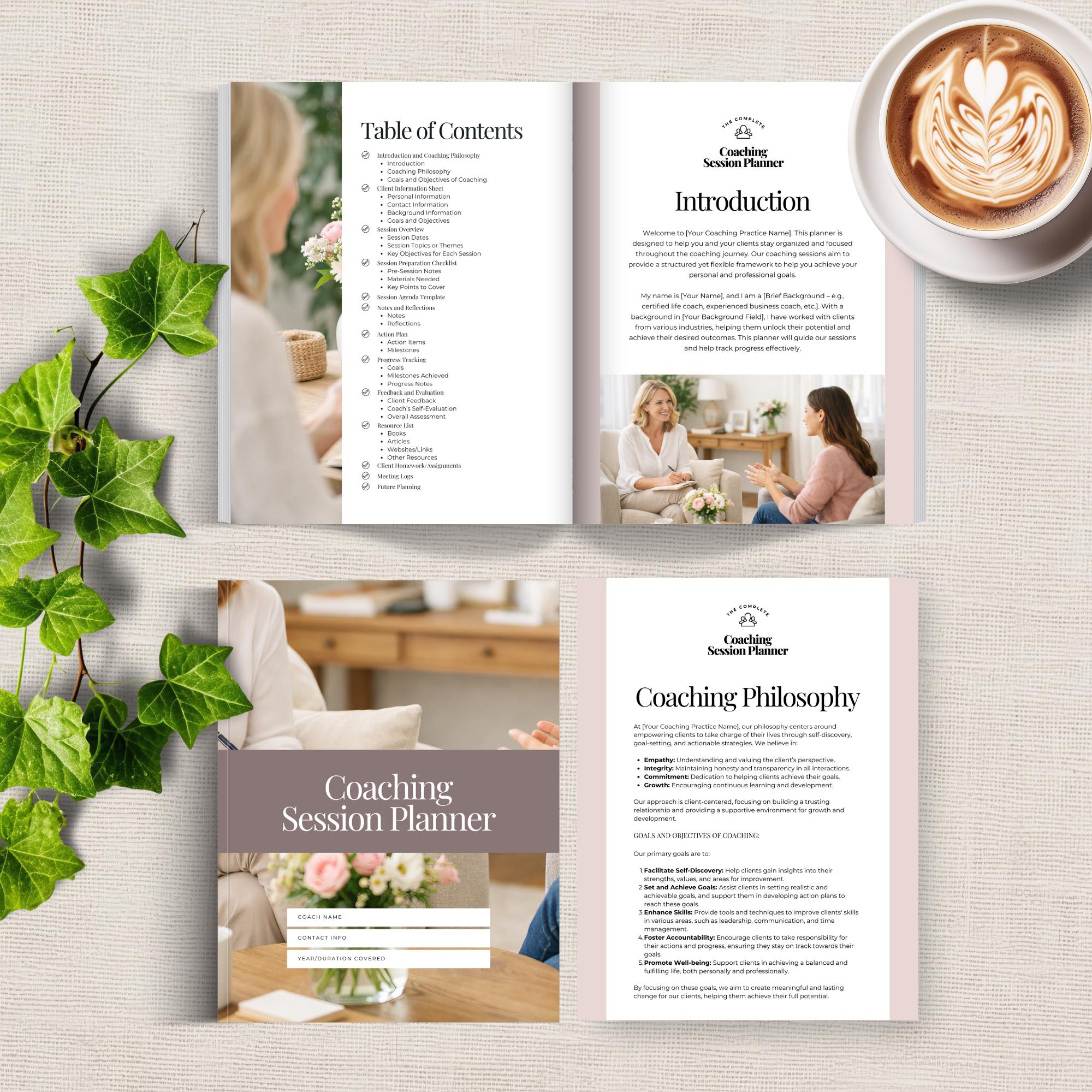 Stay organized, prep faster, and track client progress with this Coaching Session Planner, Editable Canva Template. Perfect for coaches who want a simple system for client goals, session notes, action plans, and progress tracking.