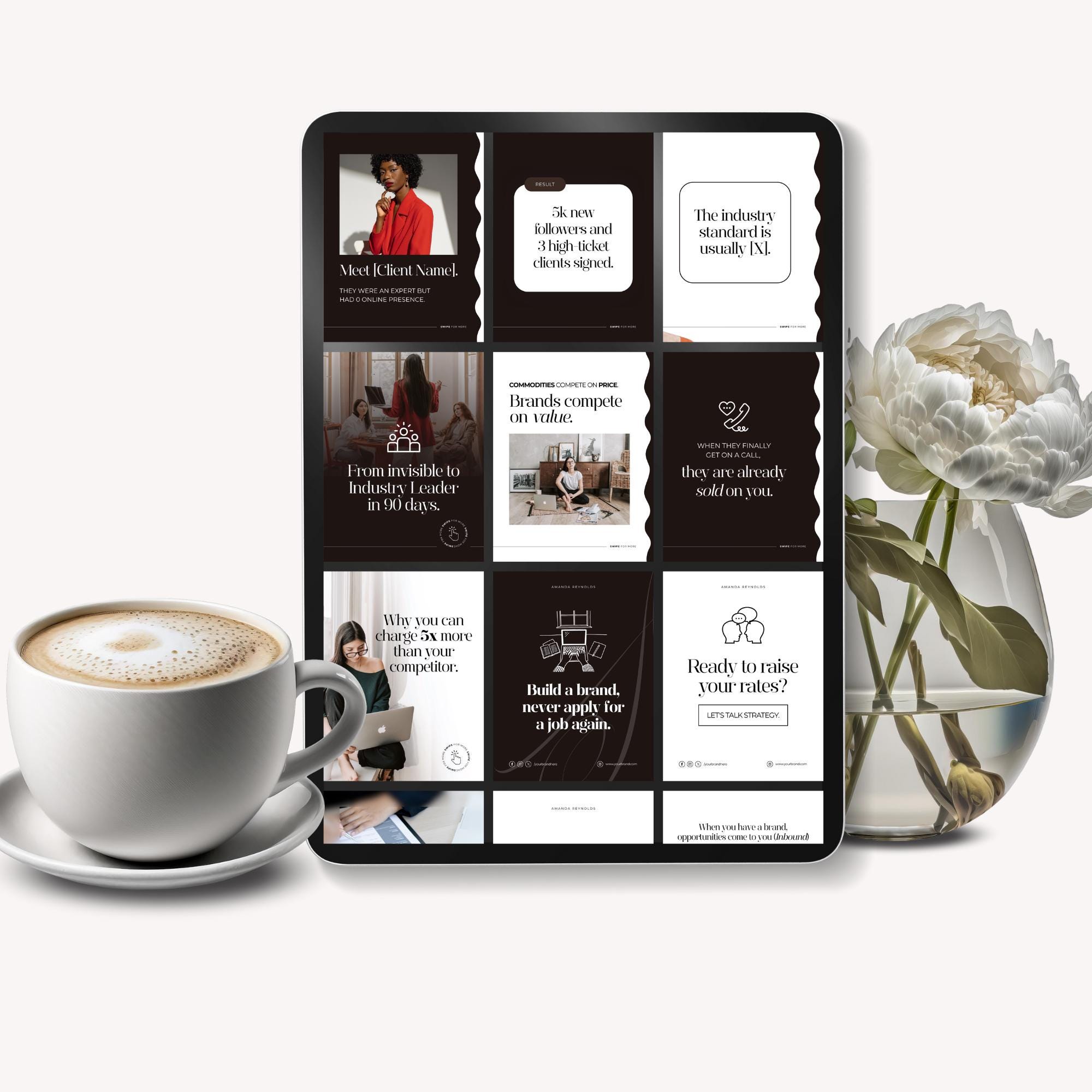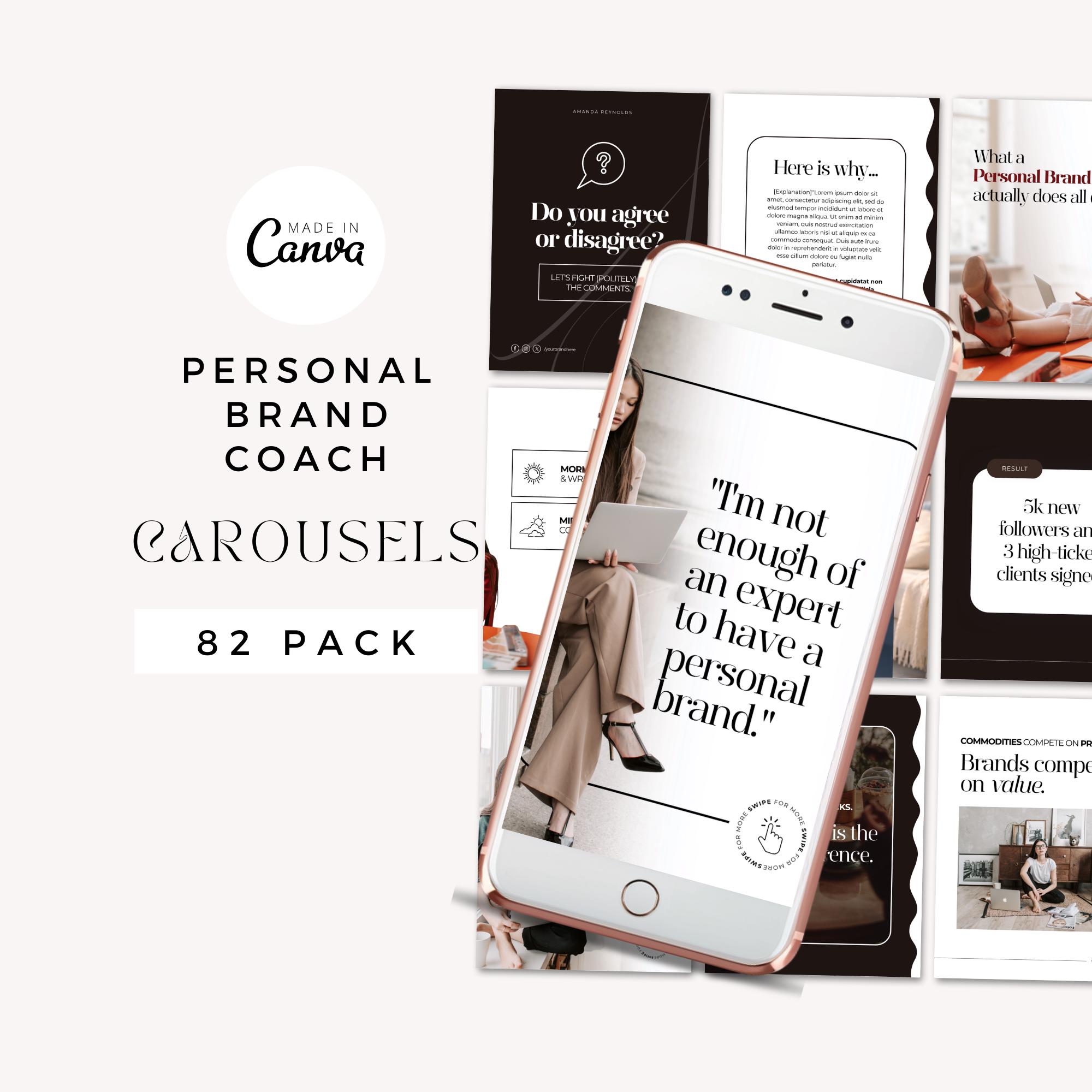 This Personal Brand Coach Carousel Template Pack is a Canva-editable set of swipe-style Instagram carousel designs made for brand coaches, business coaches, consultants, and service providers who want to create high-value content fast. Each carousel includes bold hook slides, clean layouts, and easy-to-customize text so you can plug in your niche, your message, and your offer in minutes.