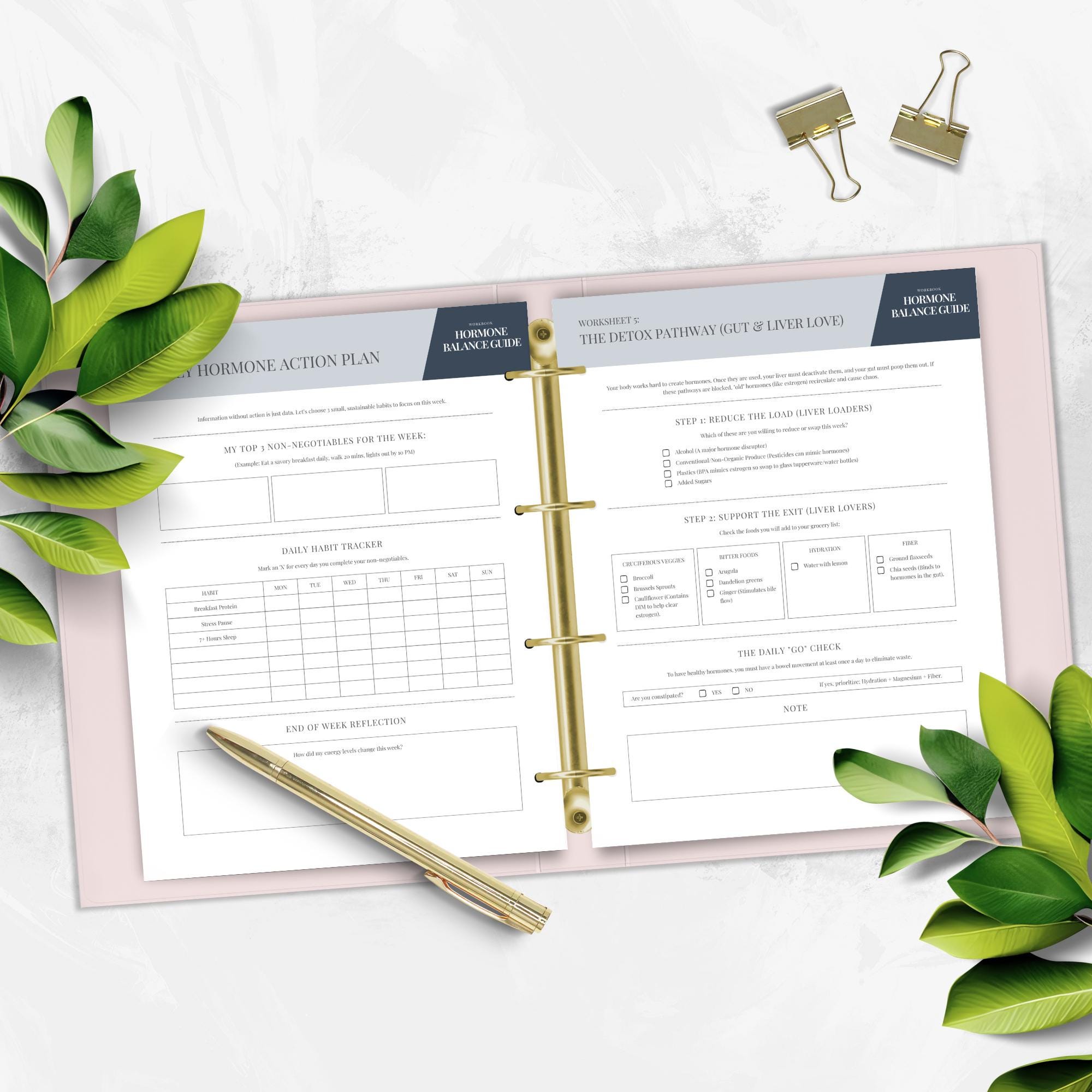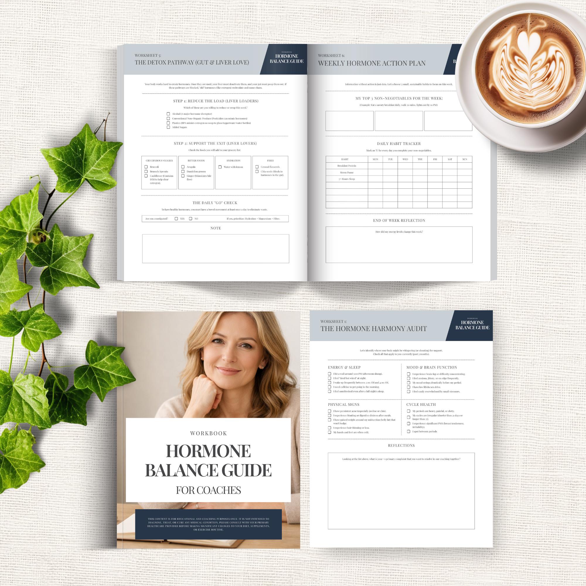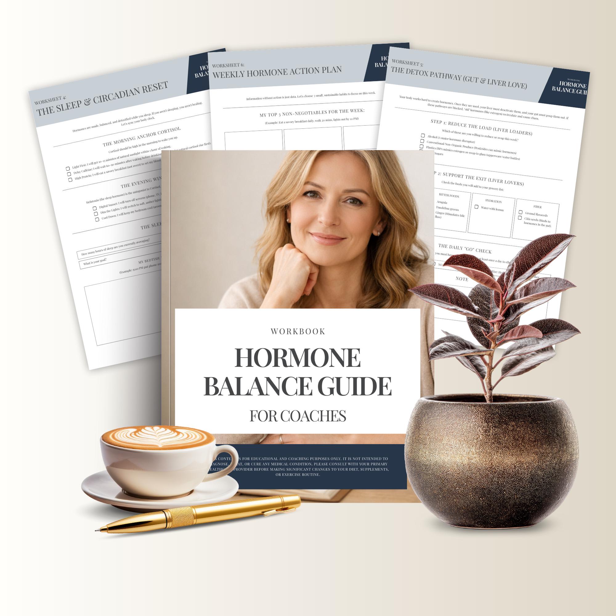 This printable client coaching workbook helps wellness coaches structure hormone-related conversations around energy, stress, sleep, nutrition habits, and weekly action planning in a clear, supportive way.