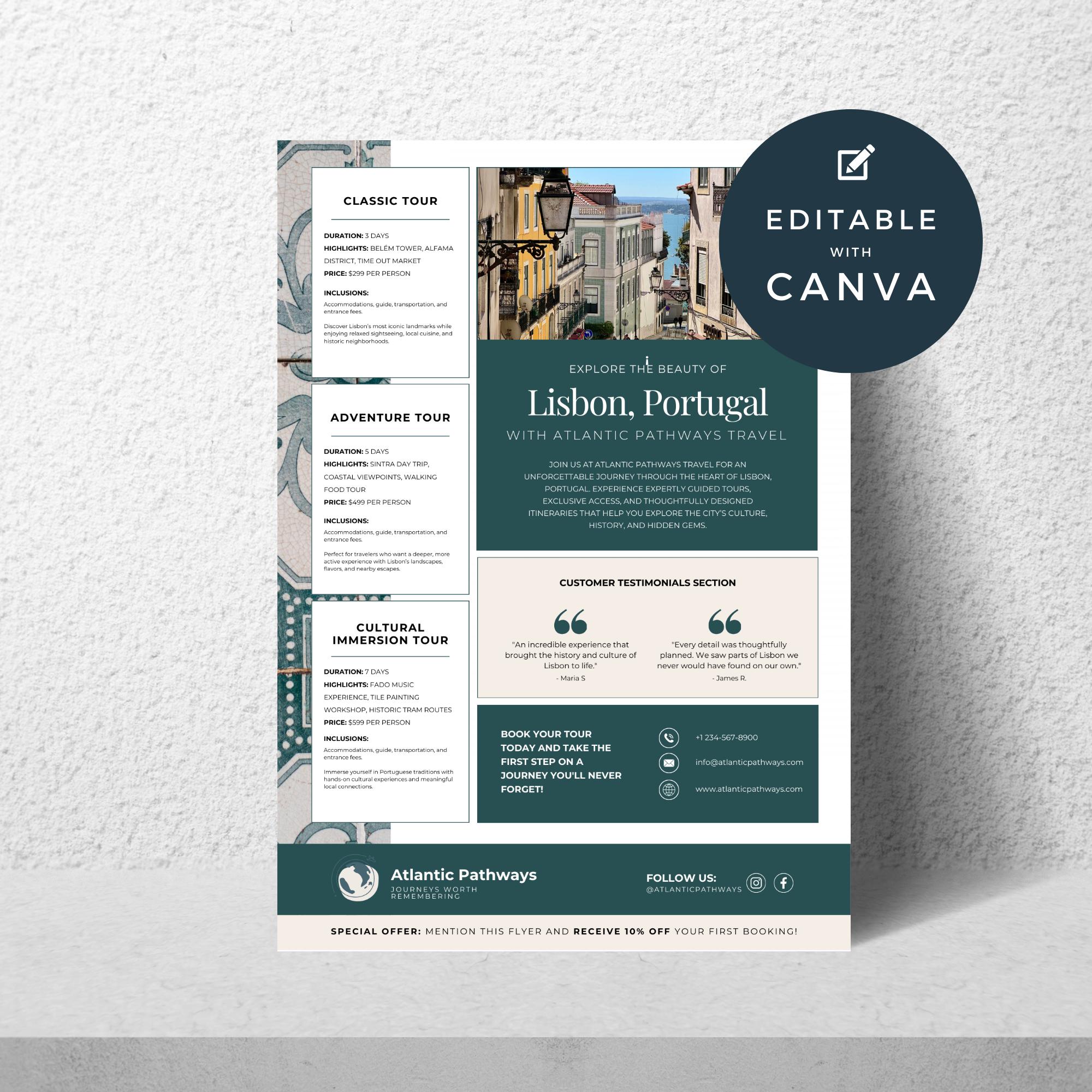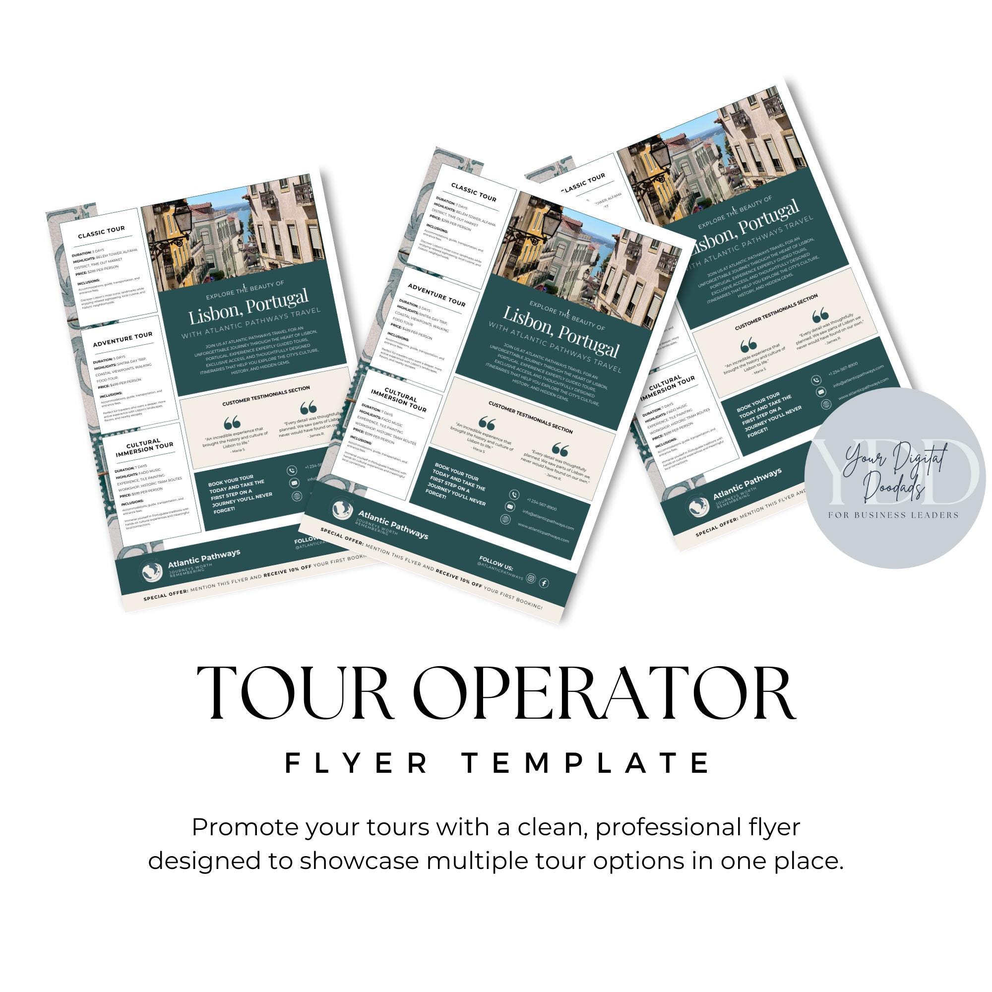 This Tour Operator Flyer Canva Template is ideal for travel agencies, tour operators, and destination businesses that want a modern, easy-to-edit marketing piece for print or digital use.