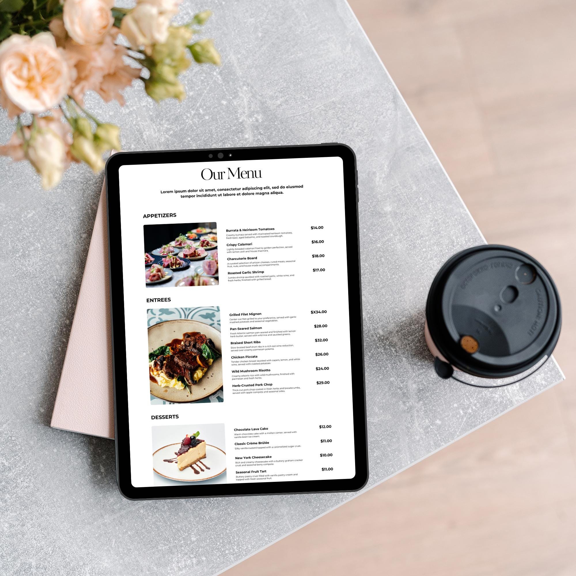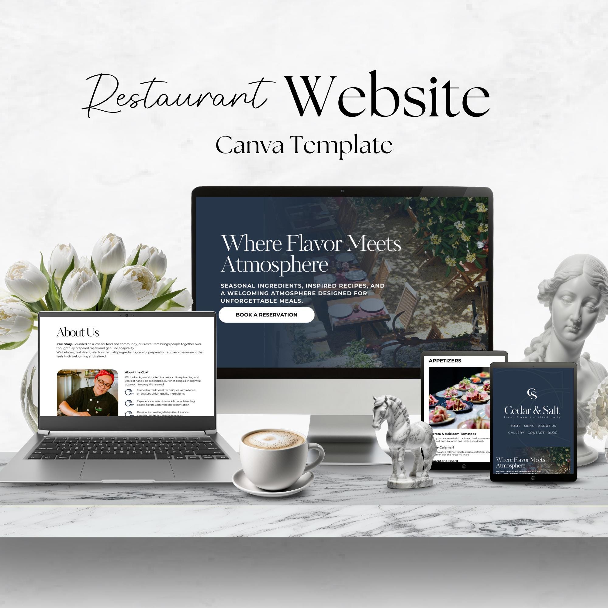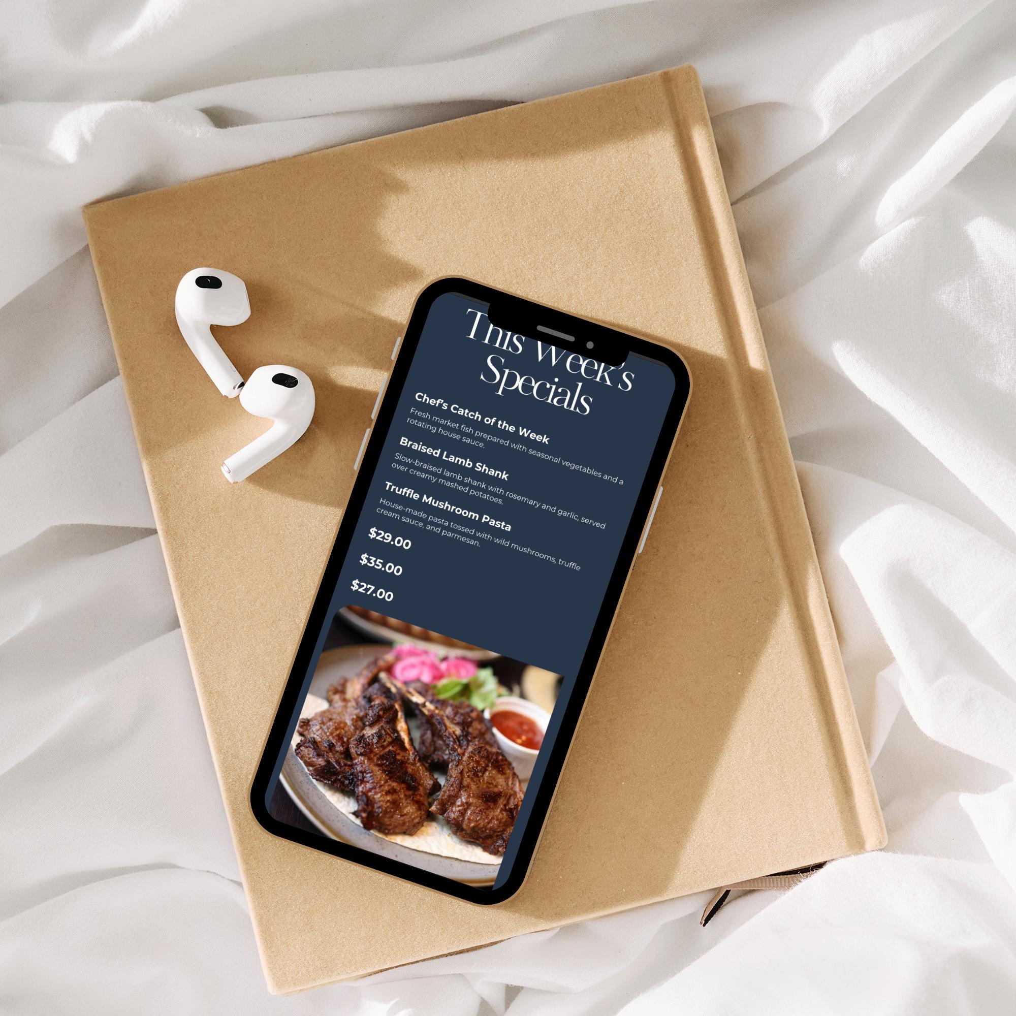 Fully editable in Canva, this layout is ideal for restaurants that want a clean, high-end look that works on desktop and mobile.