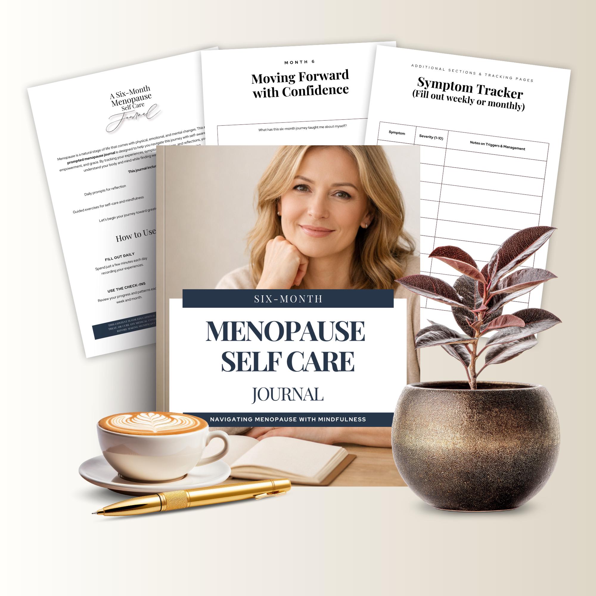 This 6 Month Menopause Journal gives you a supportive space to reflect, track patterns, and prioritize your wellbeing during this stage of life. Use it to monitor symptoms, track mood and energy levels, and build healthy self-care routines.