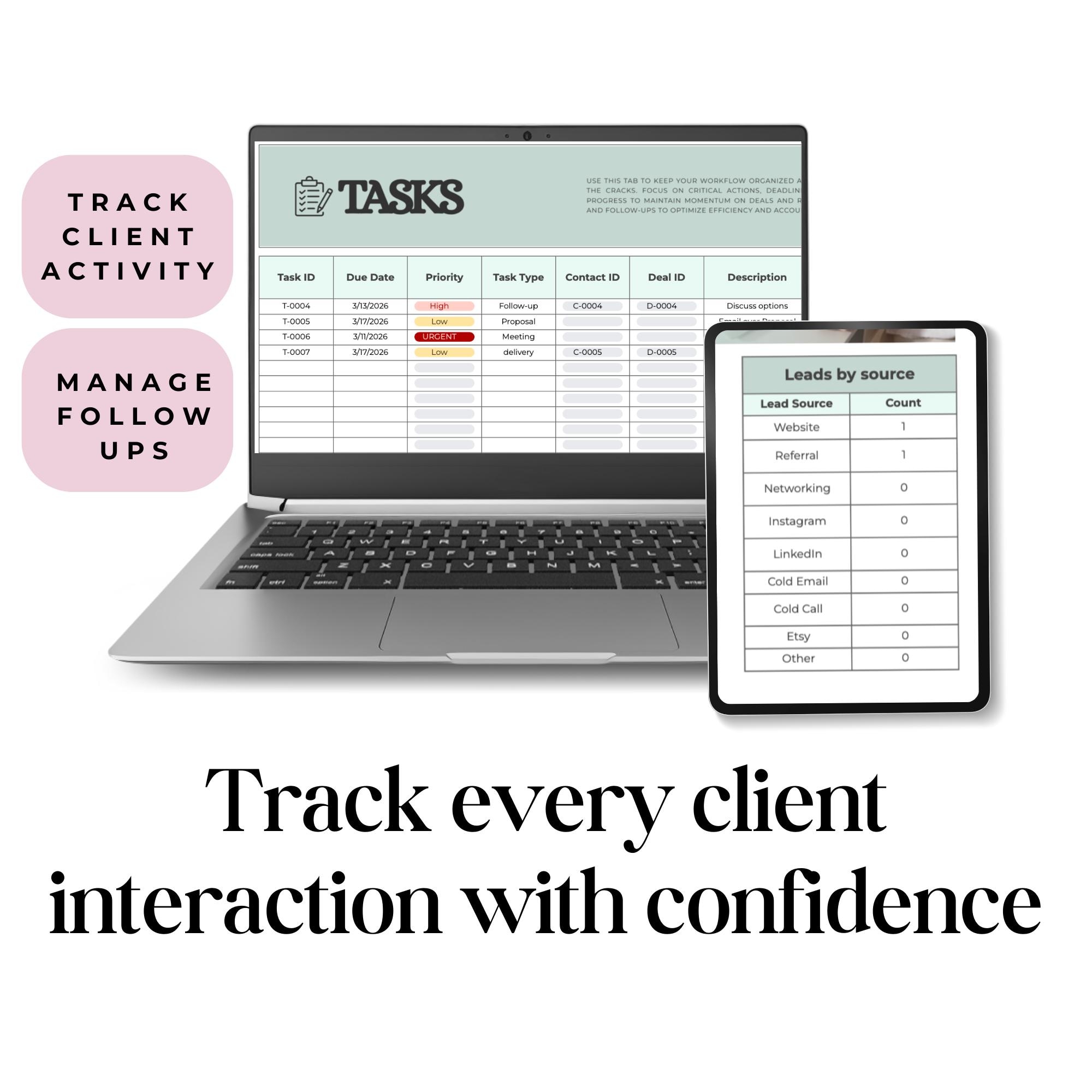 - Set follow-up tasks and check them off as you go
