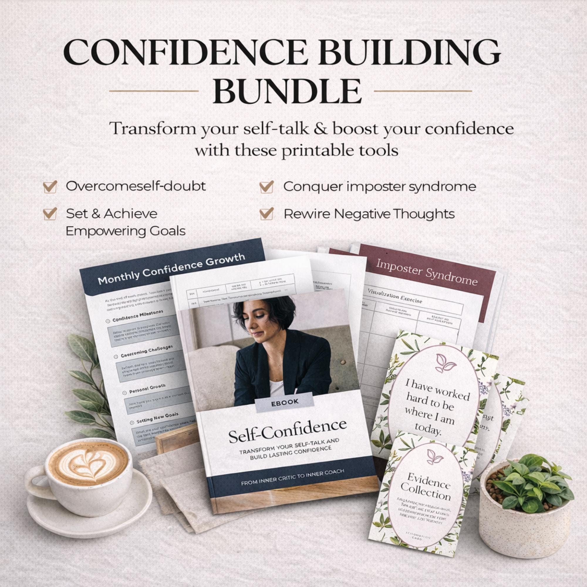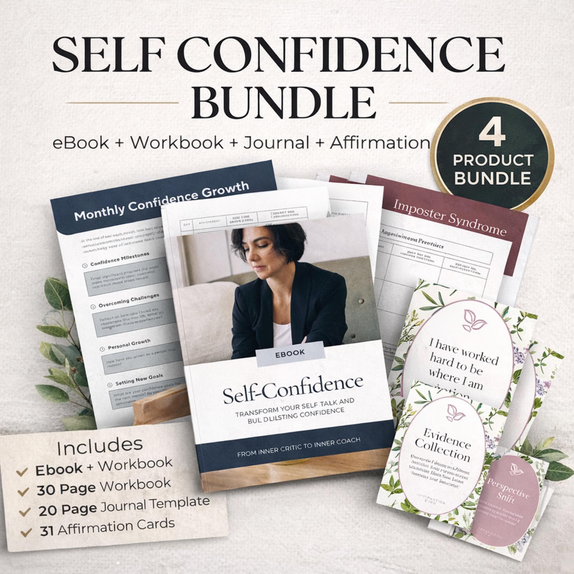 Self-doubt has a way of showing up right when you need confidence the most: walking into a high-stakes meeting, going for a promotion, or building your own business. This bundle was designed to fix that. Not with forced positivity, but with a practical, layered system that actually works.